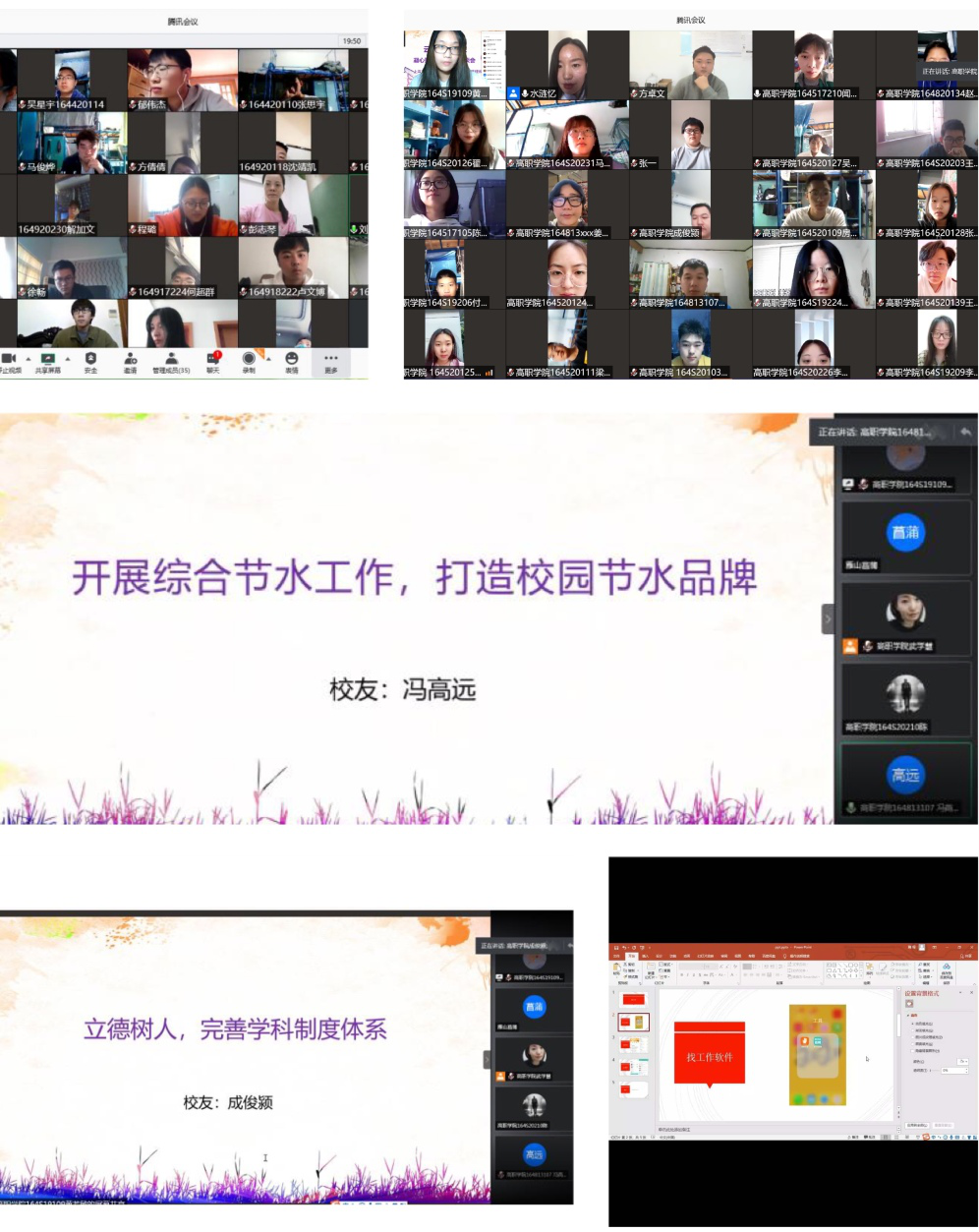 高等职业技术学院邀请了7名优秀校友担任嘉宾主持,在会议上做专题发言,向其他校友和在校的学弟学妹分享了自己对于专业学习、行业发展、职业选择、考研求职技巧的经验和心得,让参会的校友受益匪浅.