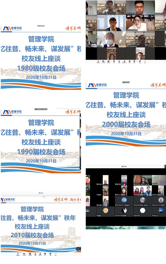 管理学院1位1980级校友、2位1990届校友、6位2000届校友以及10位2010届校友和在校生进行座谈,分享在母校求学的经历和半生的生活和事业感悟,是本次活动中最怀旧的环节: