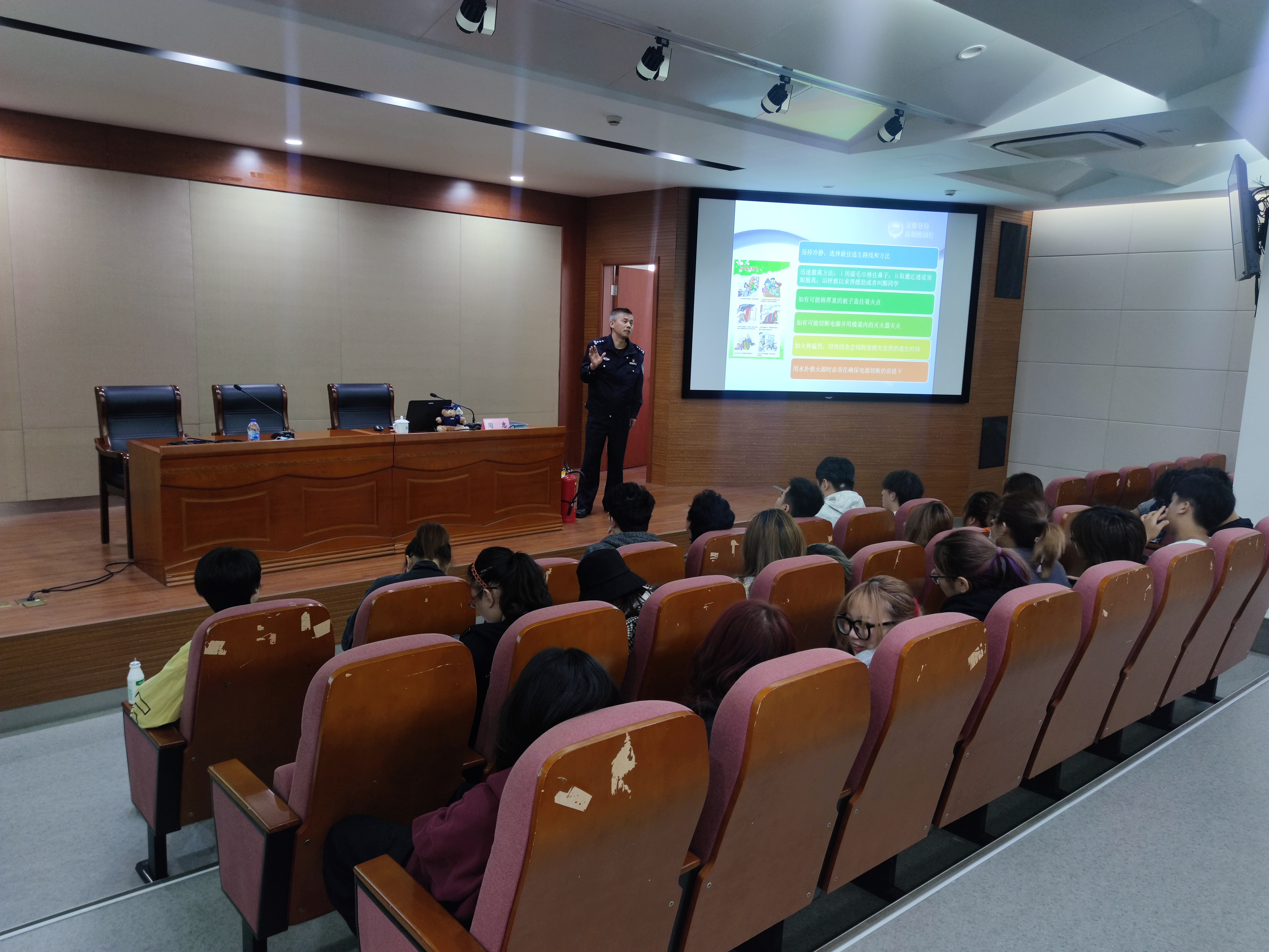 为了进一步加强2020级新生安全意识,提高学生自我防护能力,积极推进平安校园建设。11月3日上午,保卫处邀请文保分局沪西高校派出所陶忠警官在长宁校区教学楼报告厅101举办新生安全教育讲座,保卫处分校区保卫干部及成员、纺织服装学院(长宁校区)相关教师及辅导员、纺织服装学院(长宁校区)2020级全体新生参加了此次活动。