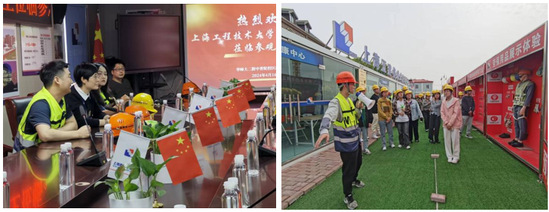 在华师大二附中普陀校区新建工程项目施工现场,项目安全员向大家讲解工地的实地环境和周边情况,展示了施工现场工程质量标准和各项纪律要求。同时,带领师生参观上海建工五建集团内的首家劳务用工管理站,体验集安全急救区、劳保用品展示体验区以及VR体验区、职工培训室和信息登记站为一体的“集成式”管培中心和安全体验区,认识和体验上海建工“家”文化在项目工地的具体实践。