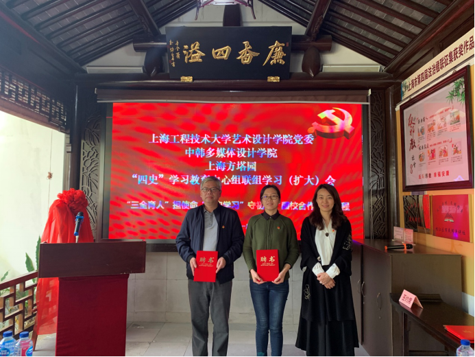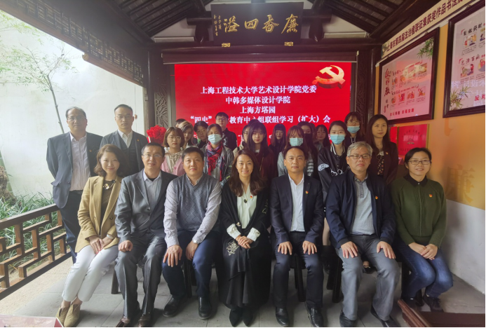 11月5日上午,艺术设计学院党委、中韩多媒体设计学院与上海方塔园在上海方塔园召开“四史”学习教育中心组联组学习(扩大)会。艺术设计学院党委书记袁蓉、马克思主义学院副院长严运楼、中韩多媒体设计学院副院长徐蓉蓉,上海市松江区绿化和市容管理局党组副书记费忠辉、上海方塔园党支部书记张峰、上海方塔园党支部副书记主任胡秀红等中韩多媒体设计学院、上海方塔园班子,相关科室负责人,学生代表出席了会议。会议由艺术设计学院党委副书记马建立主持。