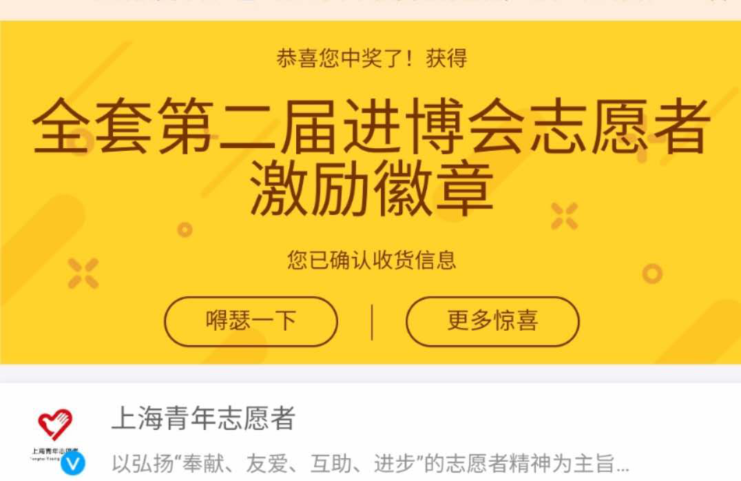 努力的人儿运气也不会差,我们的“小叶子”们就充分证明了这一点。其中“小叶子”马沈龙幸运值爆棚,抽到了黑卡的“荣耀印记”;还有田文崎、黄启暄、邓永欣、吉漪雯这四名“小叶子”在微博中抽到了全套第二届进博会志愿者激励徽章。这些激励政策为是了让更多“小叶子”在收获志愿服务幸福感的同时,进一步增强获得感,所以希望每一名“小叶子”都可以以更加积极的态度参与到志愿服务当中。