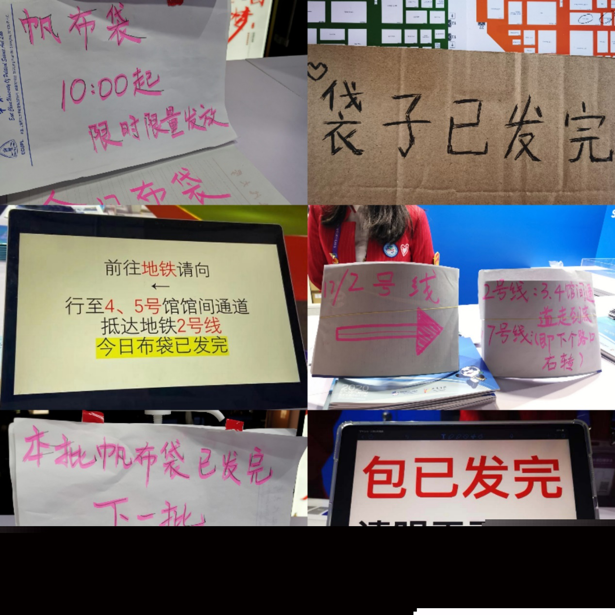 工程大“小叶子”的身影遍布全馆33个咨询处,许多岗位会遇到很多相同的咨询问题,为了使我们的服务多样化,使观众拥有更好的参展体验。大家集思广益,利用身边的电子设备、布袋、纸张等制造了各种各样的“创意牌”,能够更加生动直观地将服务信息传达给观众,成为我们工程大“小叶子”独有的色彩,我们希望成为“有温度的服务者”,也希望成为进博会更好的“指南针”。