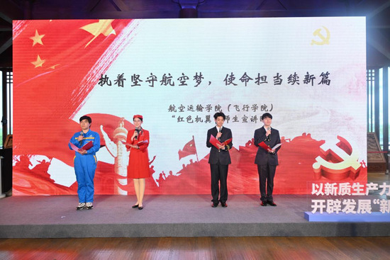石湖荡智慧物流产业集群党委与工程大航空运输学院党委结对共建以来,通过启动“智慧大课堂”,打造包含党史党建、专业技能、行业咨询等系列课程讲座,持续强化以政治建设推动党建引领产业发展。活动中,航空运输学院(飞行学院)“红色机翼”师生讲师团,以《执着坚守航空梦,使命担当续新篇》为主题,讲述了一代代中国航空人感人励志的奋斗故事。