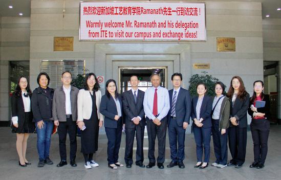 4月18日,新加坡工艺教育学院ITE管理团队Ramanath副院长一行4人到访高职学院、高技校,双方围绕产教融合、人才培养等展开交流。新加坡工艺教育学院高级课程经理Candice、部门负责人Kelly、技术文凭项目高级讲师Linda;高职学院党委书记王振钧,党委副书记、院校长郑树彬、副院校长肖谦等出席座谈,座谈会由肖谦主持。