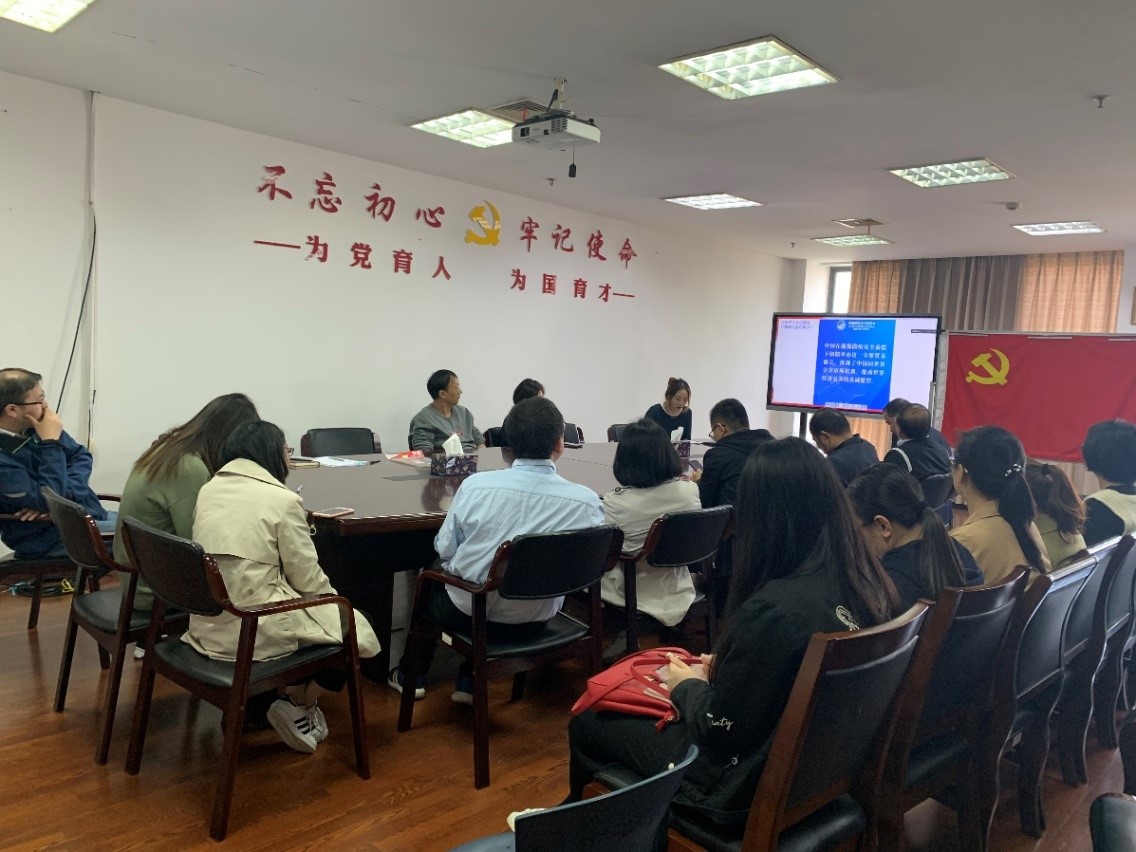 支部党员纷纷交流学习体会。王天波老师表示,家乡十堰的巨大变化,体现了国家发展的成果。十堰地处偏僻山区,以前非常的穷,但现在高速公路、铁路的开通让很多的人走出来,实现了家乡的脱贫。李宜阳老师表示,只有把个人规划融入国家大规划才能更好的服务国家发展,服务人才培养。李铭明老师谈到,作为一名高校教师,学习两个主题,深受鼓舞,深切地感受到中国的发展和担当,个人也要深刻认识自己的责任,勇于担当其使命。王文涛老师表示,作为一名教师党员,更要在工作中发挥党员的先锋模范作用,认真做好教学科研工作,努力培养科技强国所需要的合格人才。