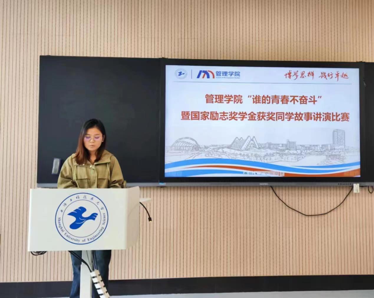 来自养老服务管理专业的张秀娟同学以“在平凡中绽放”为题,向我们展示了她在大学期间的学习与成长之路。张秀娟同学表示,获得国家励志奖学金只是她人生道路上的一个起点,她将继续以实际行动回馈祖国,贡献自己的力量。在过去的一年里,张秀娟同学始终坚持以专业为导向,积极投身于各类志愿服务活动之中。她深入社区、养老院等场所,为老年人提供关爱和帮助,用实际行动传递着尊老爱幼、敬老爱老的传统美德。工业工程专业的文元宇同学为大家带来关于“不奋斗无青春”的演讲。她认为,奋斗是青春最美丽的底色,更是青年人的本色。作为工业工程专业的学子,她通过勤奋学习和锻炼,不断提升自己的专业素养和实践能力。她积极参与各类项目,努力将理论知识应用于实际工作中,最终取得了显著的成果。来自工商管理专业的张昕欣同学详细地分享了自己从县城出发,独自奋斗于上海的心路历程。在党和国家的资助政策的大力支持下,她得以接触并享受优质教育资源,为自己的未来发展打下坚实的基础。张昕欣同学不仅在学业上表现优秀,多次荣获各类奖学金,还积极参与各项社团活动,不断拓展自己的视野,丰富人生体验。在课余时间,她始终心怀感恩,致力于回馈社会,为身边的人送去温暖与帮助。最终,来自养老服务管理专业的张秀娟同学赢得了此次比赛,将代表管理学院参加学校的比赛。