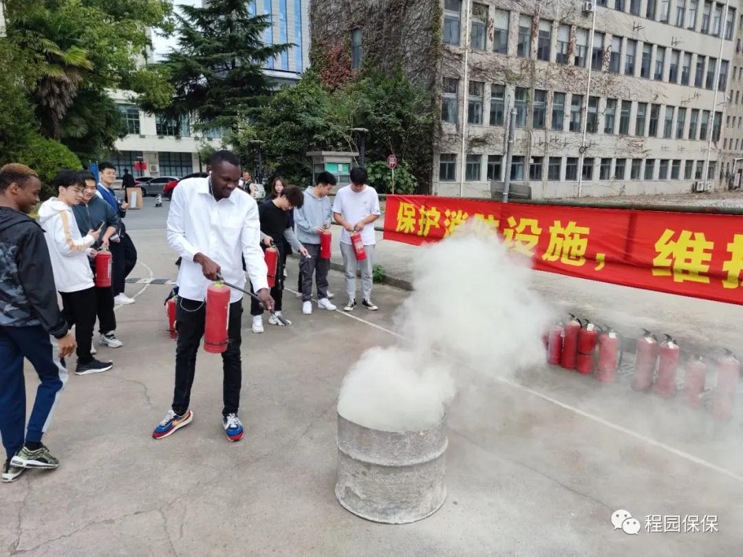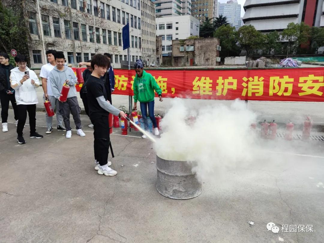 三是加强实操演练培训,掌握扑救初期火灾技能。利用校区东面停车场,保卫处分校区综合管理办消防安全员向师生员工代表介绍灭火器的种类,示范使用方法及告知相关注意事项,相关人员在保卫处老师的指导下逐一进行灭火器实操演练。
