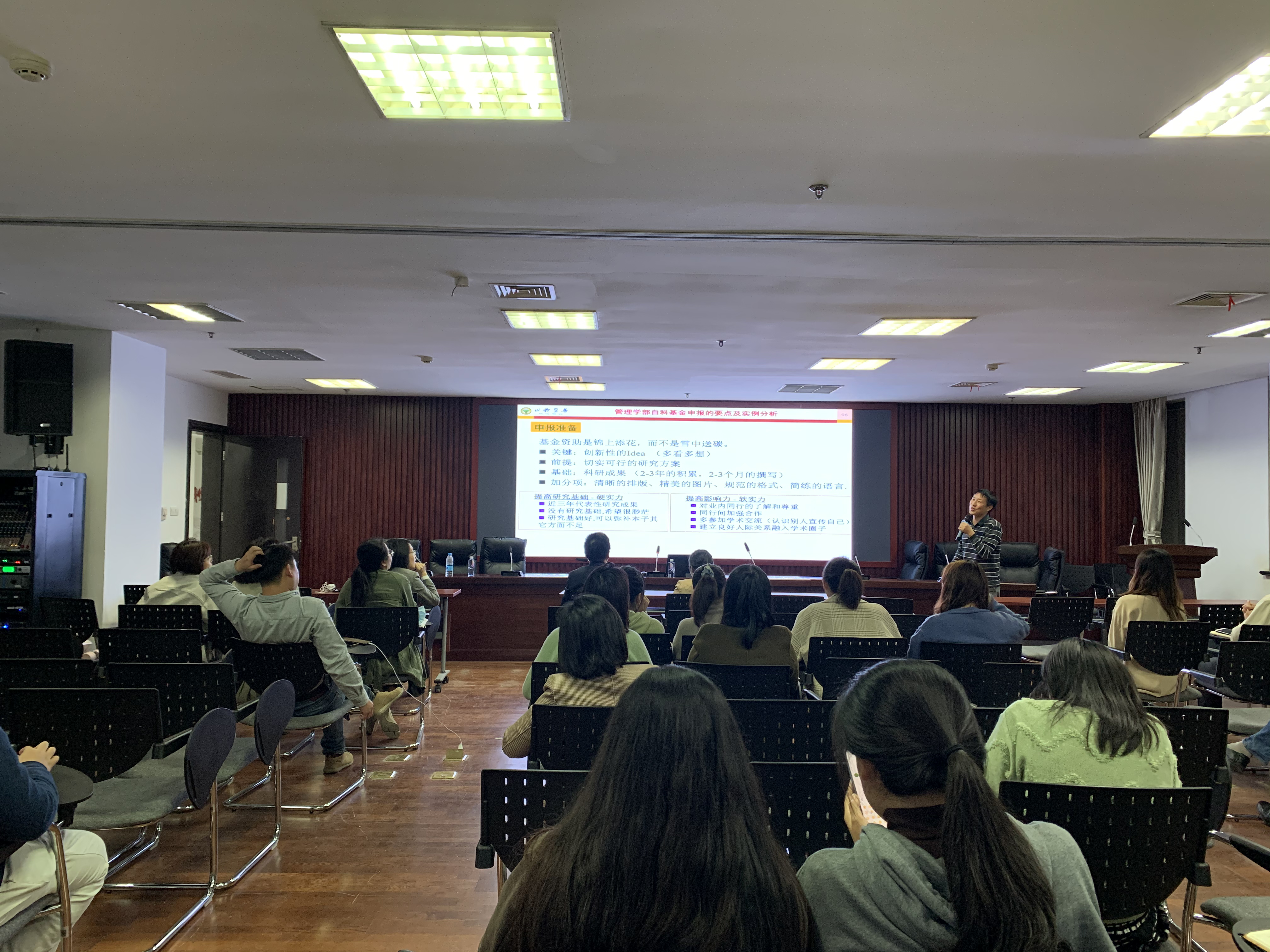 整个讲座深入浅出,特别是结合具体实例阐述自科申报每个部分写法极具启发性和可操作性。参与讲座的老师纷纷表示受益匪浅。此次讲座对推动管理学院自然科学基金申报起到了积极的作用。