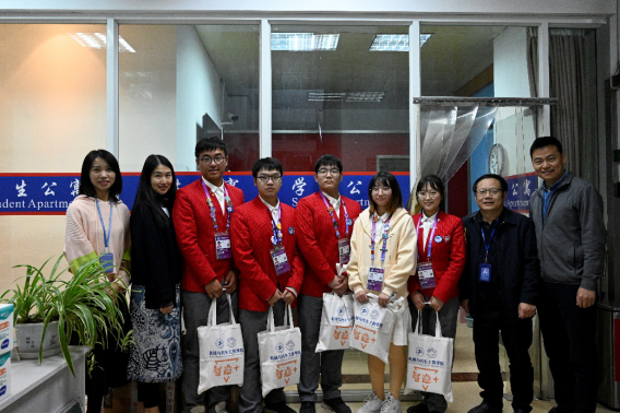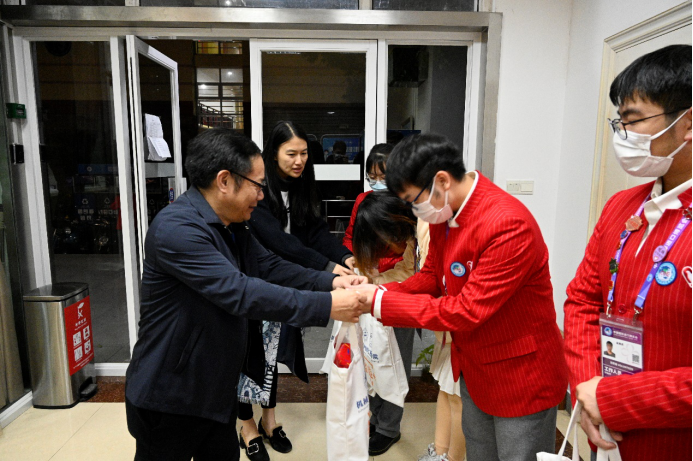 11月9日晚,第三届中国国际进口博览会进入第五天,机械与汽车工程学院院长张华,副书记王东阳,校团委副书记徐靓雯来到进博会志愿者集中住宿点,亲切慰问了披星戴月而归的进博会志愿者,并与志愿者们合影留念。机械与汽车工程学院团委书记胡莹莹陪同慰问。