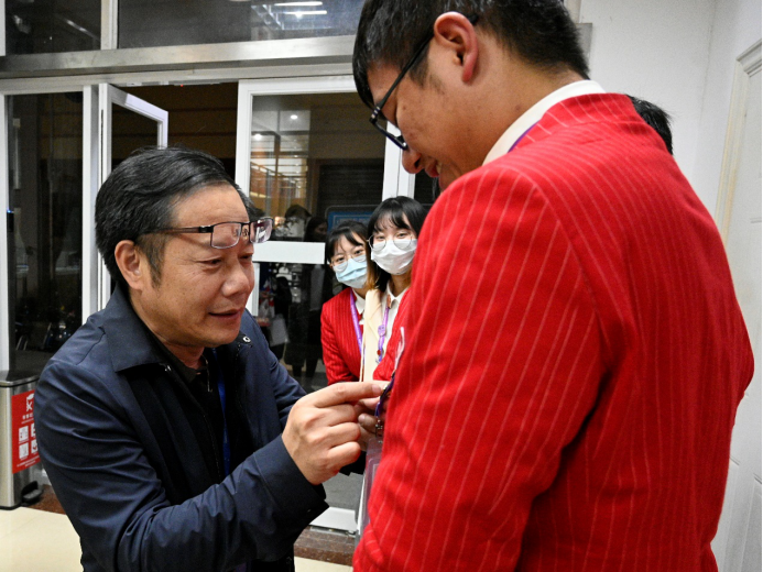 张华院长一行向志愿者们赠送了慰问礼包,内装学院帆布袋、毛巾、轮胎工具包等富含学院特色的文创作品,勉励同学们坚守岗位,克服近期天气转冷户外工作的困难,积极以乐观奉献的精神做好志愿者服务,展现机械与汽车学子风貌。