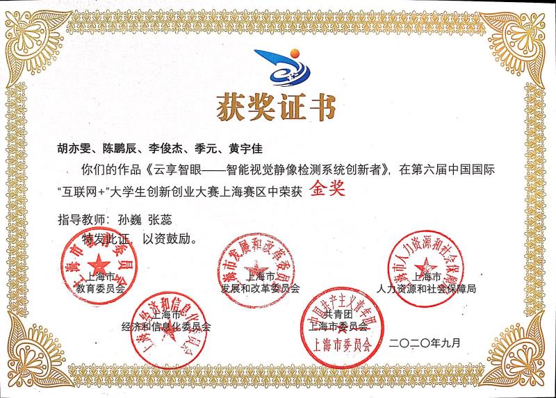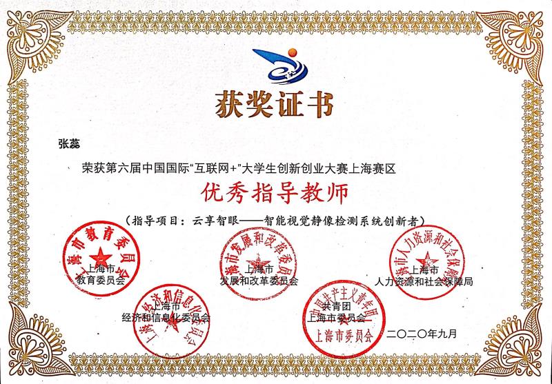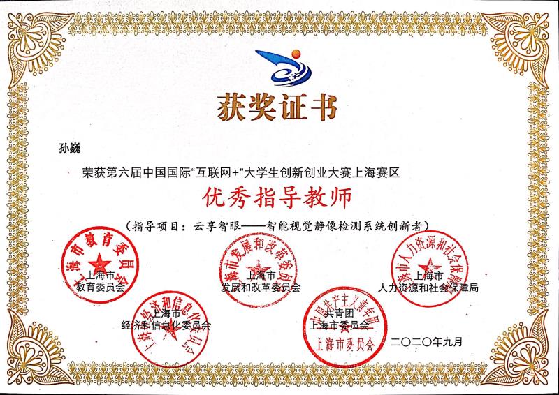在备赛过程中,学院(校)领导亲临指导,指导教师全程辅导,学生团队最终荣获第六届中国国际“互联网+”大学生创新创业大赛上海赛区“金奖”的佳绩。指导教师:孙巍、张蕊,荣获第六届中国国际“互联网+”大学生创新创业大赛上海赛区优秀指导教师。