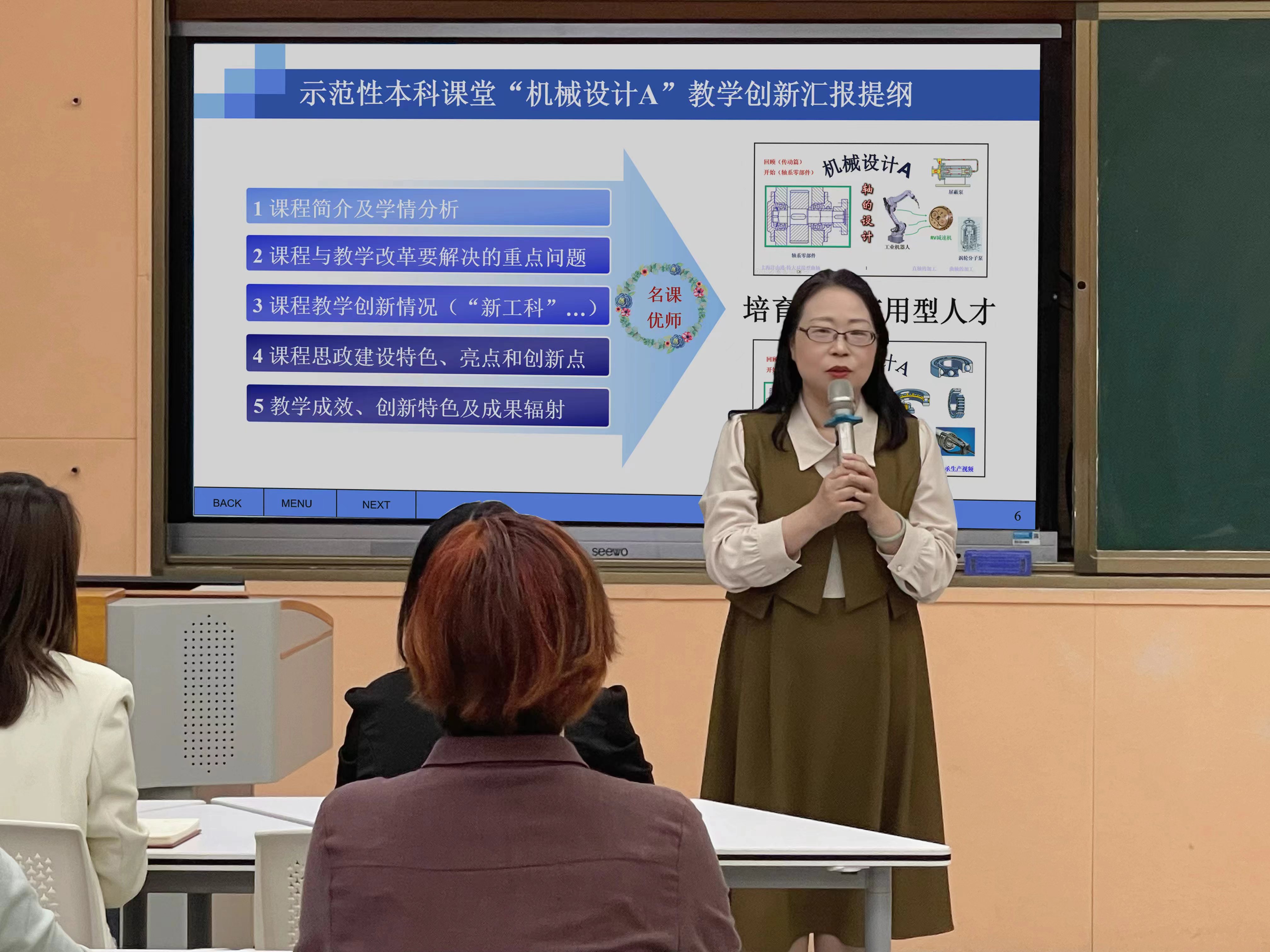 4月24日,根据《关于开展第二届教学展示交流活动的通知》的精神,为提升教师教学创新能力和教学水平,切实保障学校教育质量,学校教师教学发展中心联合机械与汽车工程学院开展了教学创新月系列活动之机械设计A课程观摩讲座。活动在教学楼B510举行,特邀我校金晓怡教授以上海市教师教学创新大赛一等奖课程为例分享课堂教学经验,活动通过腾讯会议面向全市同步直播,本次活动由教师教学发展中心副主任刘春娣主持。