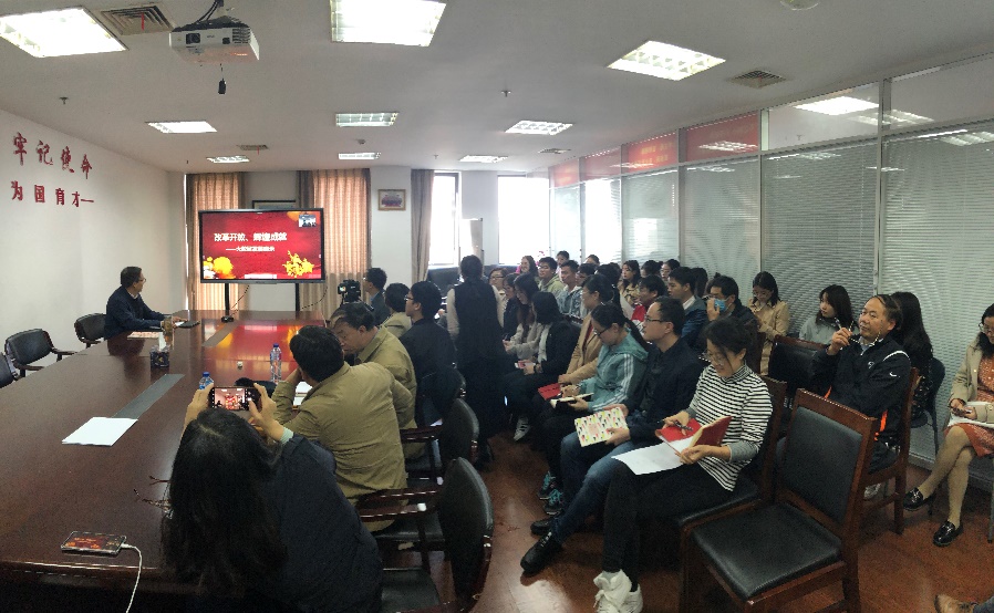 11月13日下午,数理外国语联合党委在行政楼1308开讲 “四史”学习教育精品党课“改革开放——大数据发展启示”。数理与统计学院殷志祥院长担任课程主讲人,全体党员通过线下线上结合的方式参加党课学习。