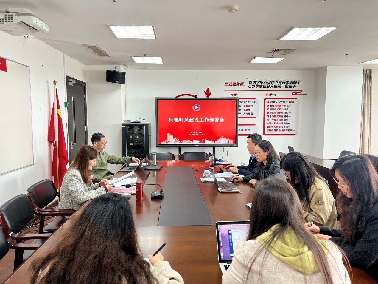 为了深入推进思政课教师师德师风建设,提升教师的师德修养,4月26日上午,马克思主义学院召开师德师风专题研究部署会。学院党委委员、教师代表参加会议,会议由学院党委书记董旖旎主持。