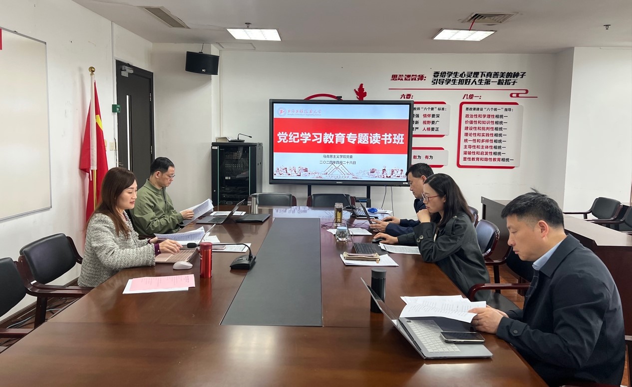 为深入推进党纪学习教育,4月26日上午,马克思主义学院党委在行政楼1112会议室举行党纪学习教育读书班第一次集中学习,学院党委委员、组织员、宣传员参加学习,党委书记董旖旎主持学习会议。