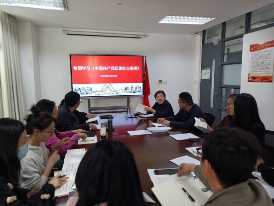 4月26日,为扎实推动学院纪检委员在党纪学习教育中先学一步、学深一层,纺织服装学院组织纪检委员开展党纪学习教育,学院党委书记朱君璇带领委员们深研细读《中国共产党纪律处分条例》(以下简称《条例》),通过原原本本、逐章逐条学习,加深委员们对《条例》的理解把握,推动《条例》入脑入心。