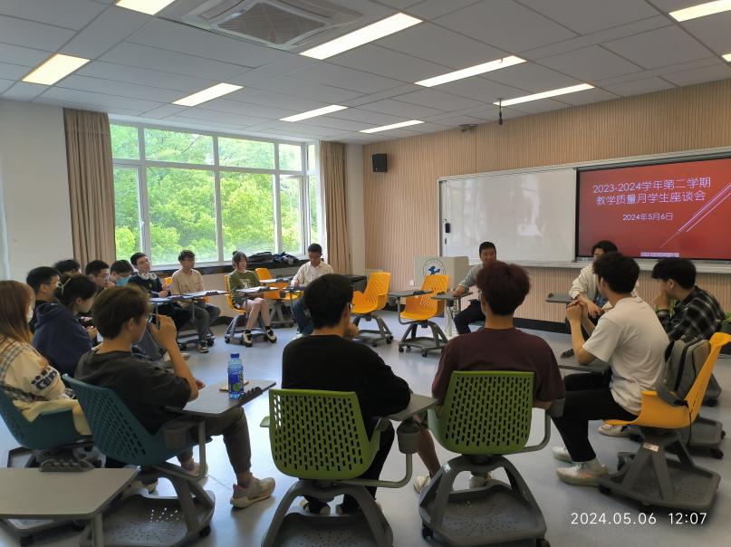 王润锴阐述了座谈会的宗旨,鼓励学生们畅所欲言,对学校、学院在教学过程中的不足之处提出宝贵意见,共同推动教学质量的不断提升。学生们踊跃发言,提出了一系列意见和建议,主要涉及:课程安排学期分布不均、新老教学系统衔接不畅、实验课时间安排不合理、企业微信缺少及时考试信息提醒功能等。针对学生提出的问题,教师代表们进行了回应和交流,并承诺将部分问题汇总后及时反馈给学校相关部门。