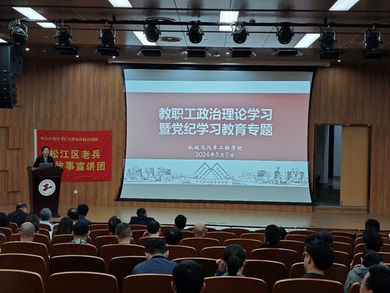 为推动党纪学习教育走实走深,牢固树立纪律意识。5月7日下午,机械与汽车工程学院在现代交通大楼8B126开展教职工政治理论学习暨党纪学习教育专题活动。本次学习特邀松江老兵讲故事宣讲团李学武团长作为主讲嘉宾,学院党政领导班子,全体教职工参加本次学习活动,会议由学院党委书记虞蓉主持。