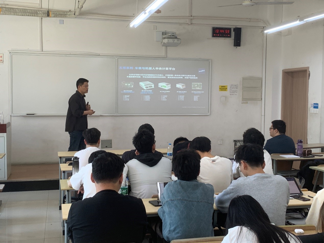 5月10日下午,电子电气工程学院自动化专业本科生的《计算机控制技术》课堂上迎来了一场别开生面的授课。深兰机器人(上海)有限公司的资深工程师张兆泉亲临现场,向同学们讲授人工智能在智能终端的应用及系统设计。