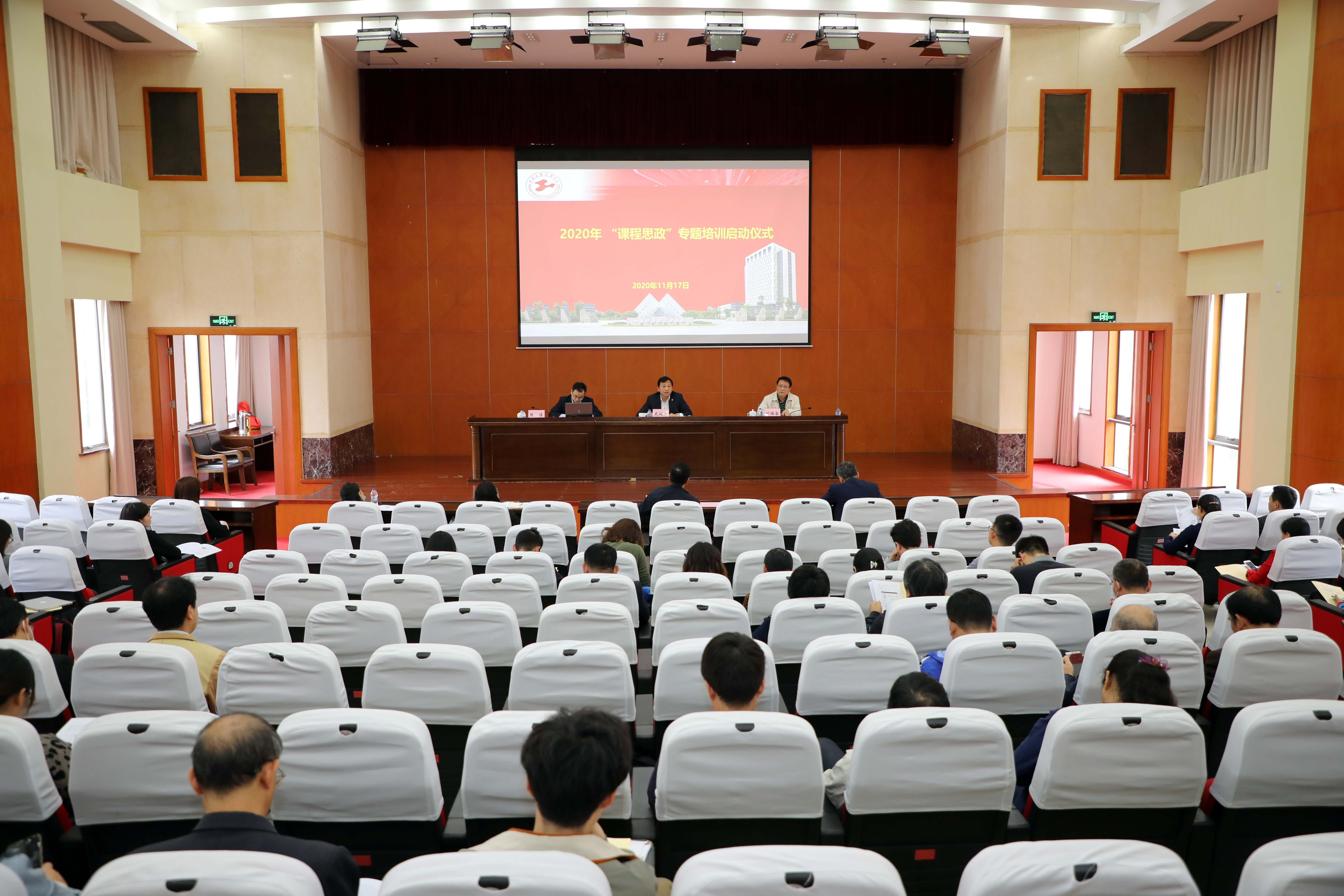 11月17日,我校“课程思政”专题全员培训启动仪式于行政楼B301会议室召开。校党委副书记、校课程思政指导委员会主任史健勇出席会议。校党委教师工作部部长、人事处处长刘福窑,教务处处长陈浩,“课程思政”示范课参赛选手,历年“课程思政”教学建设项目负责人,各学院教学副院长,教学团队负责人及教师代表参加会议。会议由教务处处长陈浩主持。
