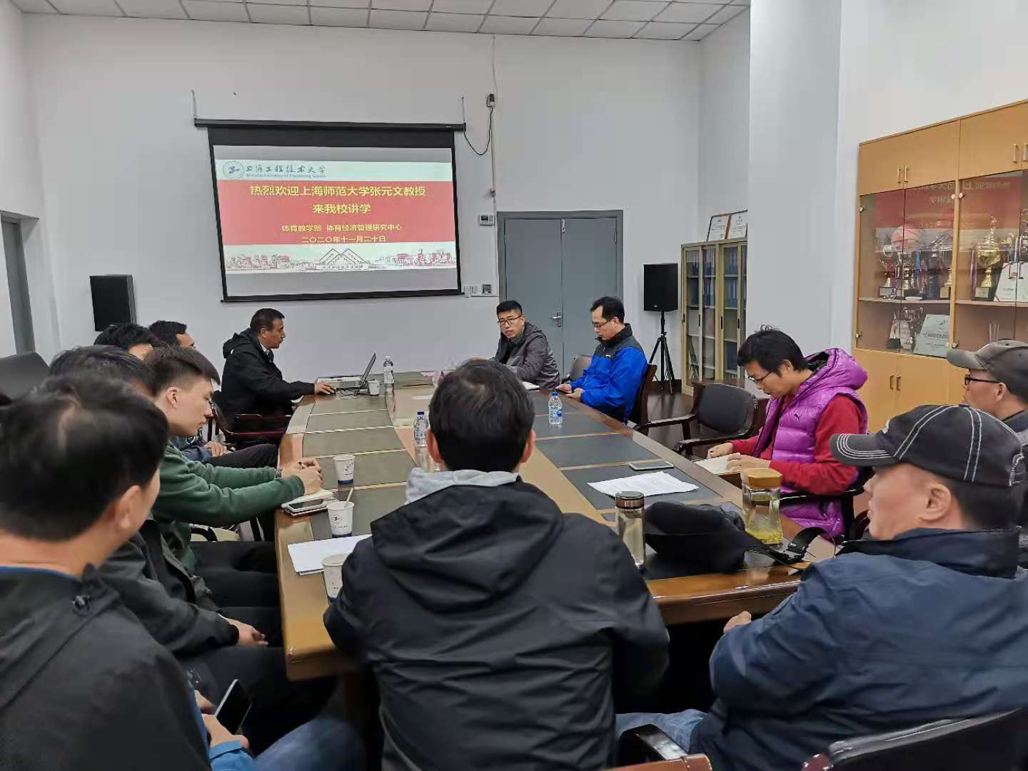 11月20日下午,上海师范大学体育学院副院长张元文教授在我校松江校区体育馆201为体育教学部全体教师作了题为《高等级课题申报的心得体会》的学术讲座。报告会由体育教学部副主任葛耀君主持,体育部主任张建新教授和骨干教师近30余人参加本次学术讲座。
