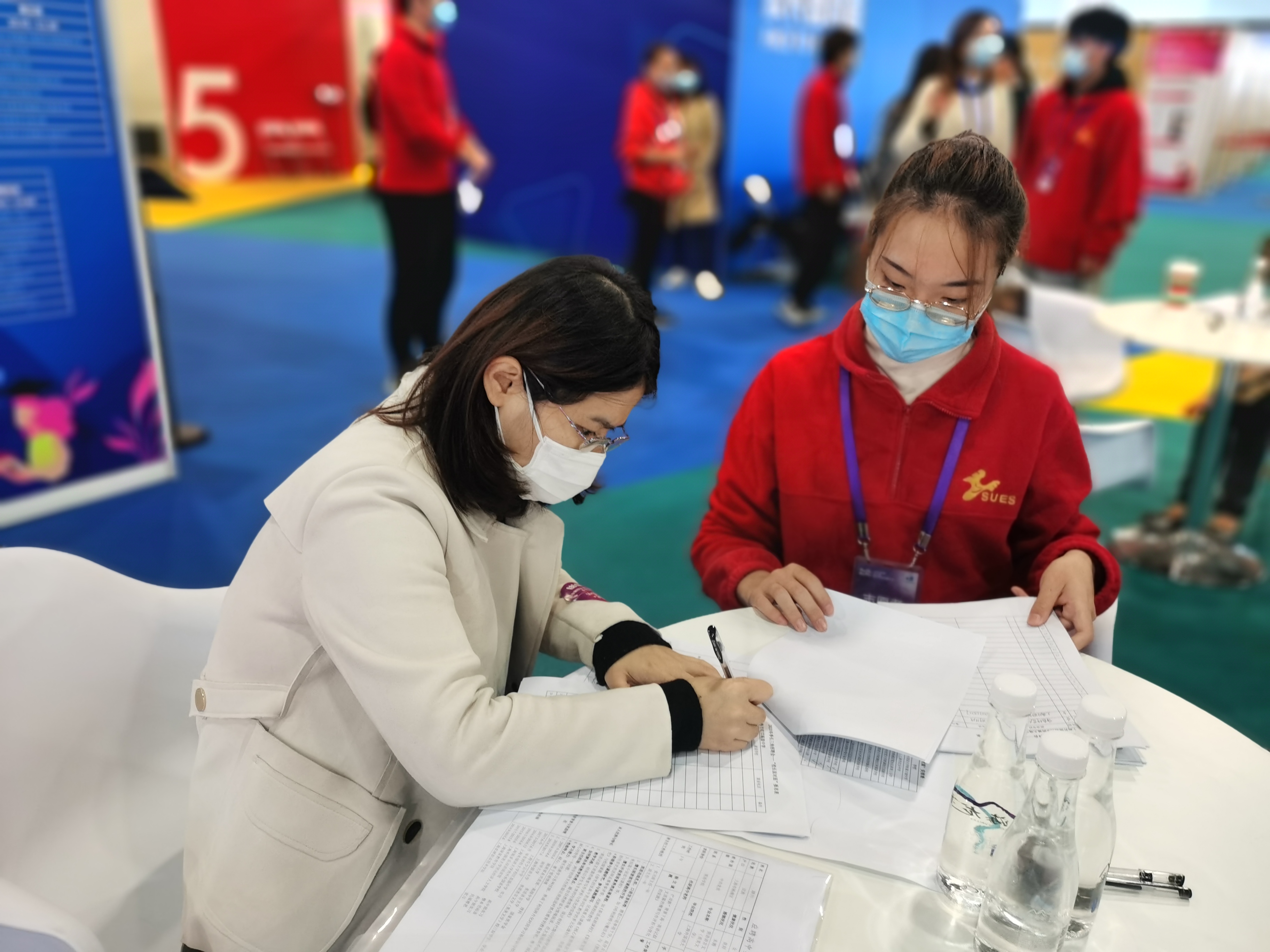 11月22日,由上海市教育人才交流中心主办的“2020年冬季长三角联合师资招聘专场”招聘会在上海光大会展中心举行。长三角地区400多家用人单位参加招聘会,当天共有7000余人前往会展中心参与应聘。我校100余名大学生志愿者全程参与招聘会的筹备和运营,得到了主办发的一致好评。