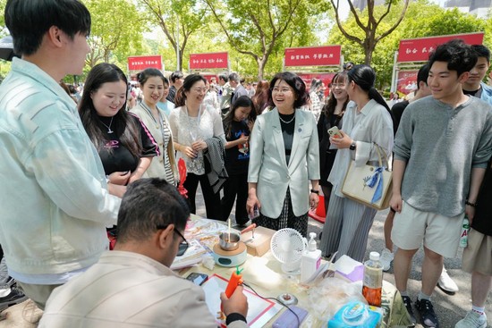 在活动现场,朱晓青亲临指导,并与同学们亲切交流。她不仅关心同学们的学业,更着重了解了同学们在课余时间的兴趣爱好,一边与同学们亲切交流,一边仔细参观了各个社团的展示项目,对同学们的热情投入和精湛技艺给予了高度评价。