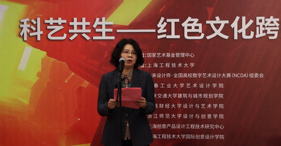 朱晓青在开幕式上致辞并宣布开幕,她讲到,本次展览汇集了来自全国各地高校师生的创意与智慧,生动而深刻地表达了对红色文化的理解与感悟。通过展览,我们将这些珍贵作品呈现给更广泛的高校师生,旨在激励年轻一代,以实现中华民族伟大复兴的中国梦为己任,坚定地赓续红色基因、传扬红色文化,为以新质生产力推进中国式现代化建设书写新的时代华章。