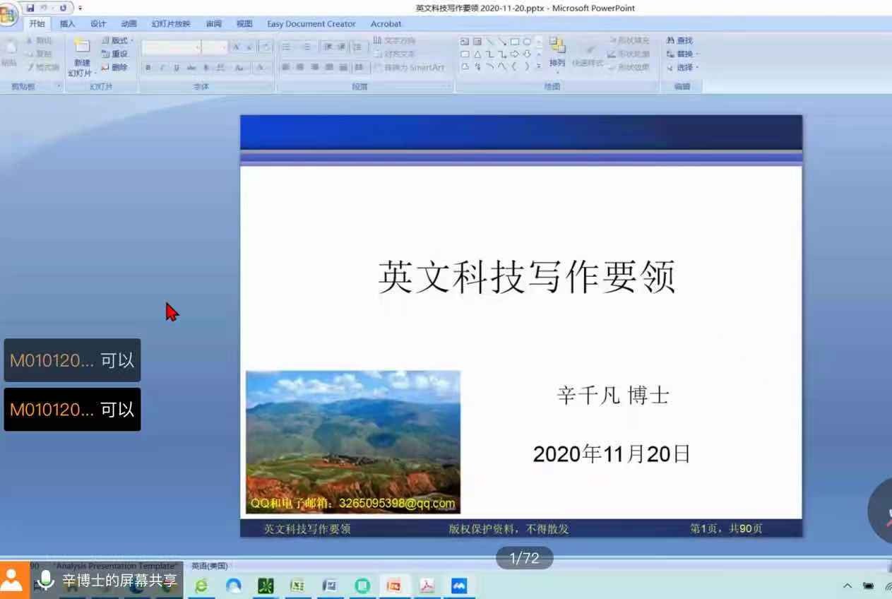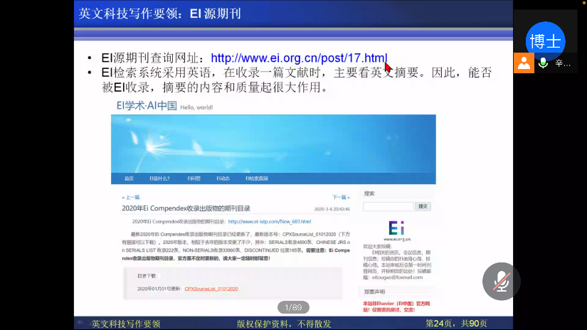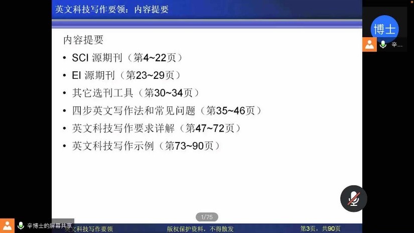 为提高研究生英文科技写作能力,帮助其发表高水平英文论文、增强国际交流能力,11月20日上午,机械与汽车工程学院邀请2020年上海工程技术大学海外名师项目获得者辛千凡教授线上开展题为“Key Techniques of English Scientific Writing(英文科技写作要领)”的主题讲座,近300名研究生参与讲座。辛教授于美国华盛顿大学获得机械工程硕士、博士学位,现担任美国HXK技术公司主管,英文底蕴深厚,写作技巧精湛。