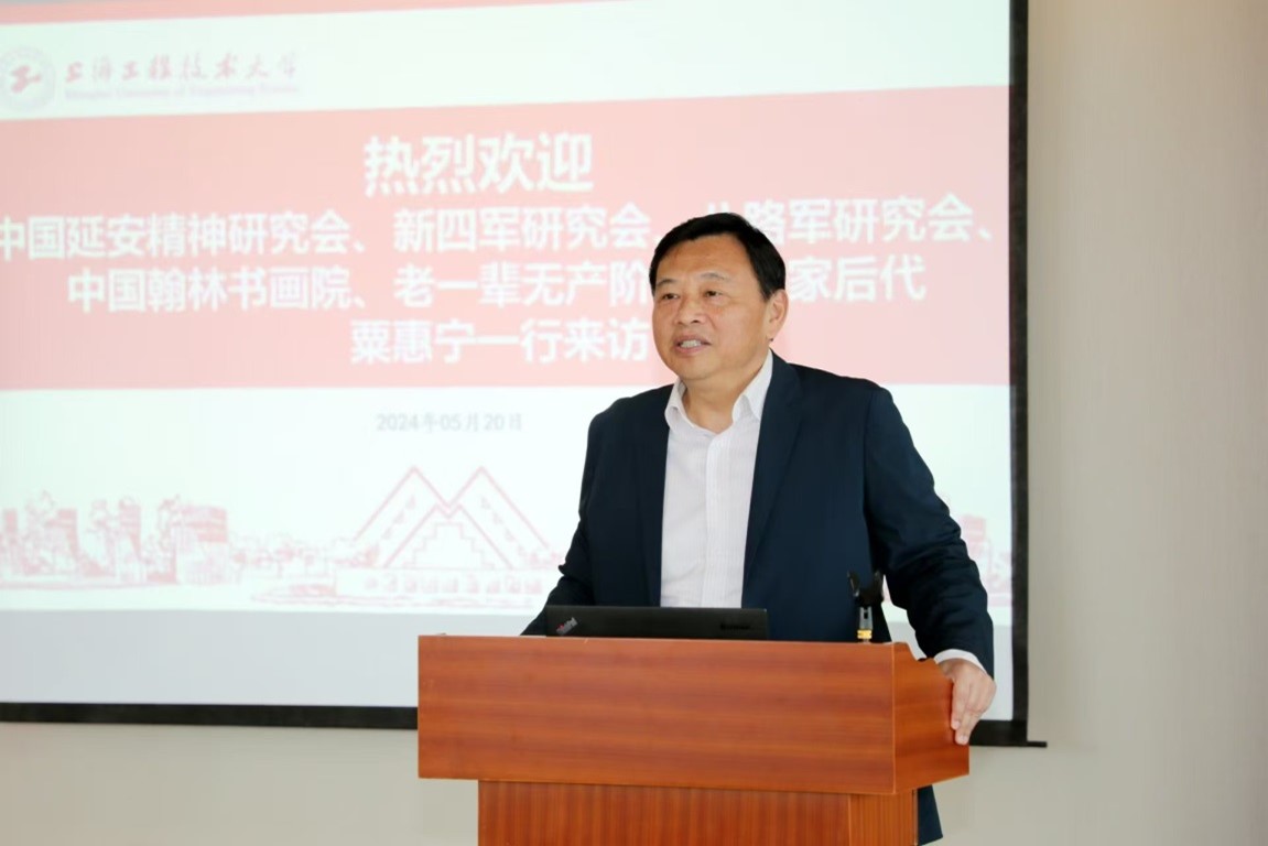 史健勇对延安精神研究会代表团一行的到来表示欢迎。他在致辞中表示,作为上海本地的应用类高校,学校很荣幸有机会能在上海解放75周年之际邀请到中国延安精神研究会和老一辈无产阶级革命家后代来到学校考察交流和传承延安精神。他详细介绍了学校的情况,同时强调,学校的老领导、老同志们秉承着忠诚爱党、艰苦奋斗的优良传统,为学校和教育事业的发展做出了卓越贡献,同时也亲历和见证了上海的解放和发展,老一辈领导们的精神必将伴随着这次延安精神的传承,成为学校广大师生润养初心、笃定方向、提升质量的思想源泉。