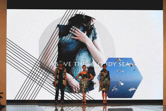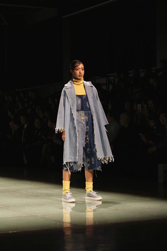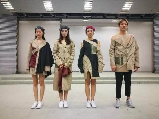 因为文化和自然环境的不同,学生所展示的作品也纷繁脱俗。一组带着浓厚拼接风的时尚服饰吸引了在场的目光。这是出自新西兰奥塔哥理工大学学生roseharriettekennedymanhart之手,她从环保主题出发,利用废旧的牛仔布与绳子,通过撕扯,盘曲等手法再组合,创造出全新的面料。“人们总是喜新厌旧地购买新衣服,而我却希望环保地利用面料再造,出现惊喜。”