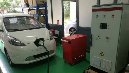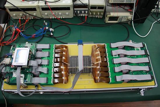 题图说明:上海工程技术大学研制新能源充放电检测设备。