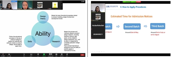 为进一步扩大我校国际学生硕士研究生的招生规模,提升生源质量,更专业细致地为申请者答疑解惑,5月24日,国际教育学院联合艺术设计学院,共同举办了“设计”全英文授课硕士专业在线招生宣讲会。