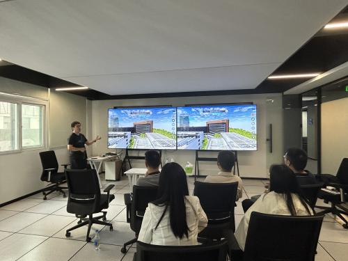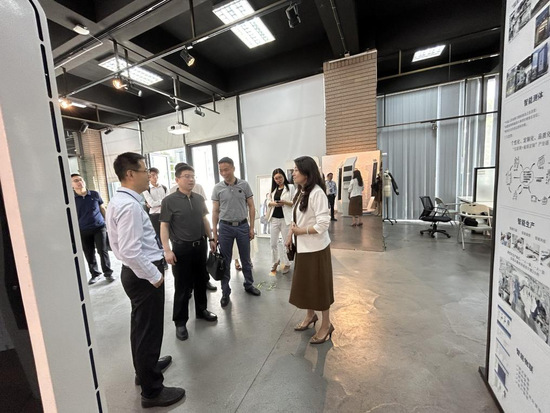 最后,启东市一行来到科技园长宁校区,参观了园区科技型企业家育汇康和文创类企业一书一课,并参与体验可以应用于教学的数字人课堂。