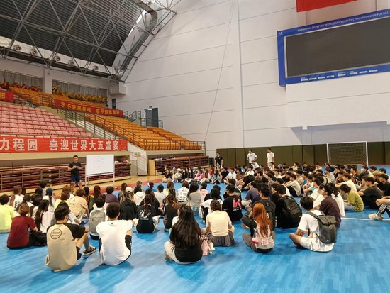 5月24日,竞赛活动部组织了校体育馆测试赛,服务场馆内赛事运行的志愿者进行了演练。
