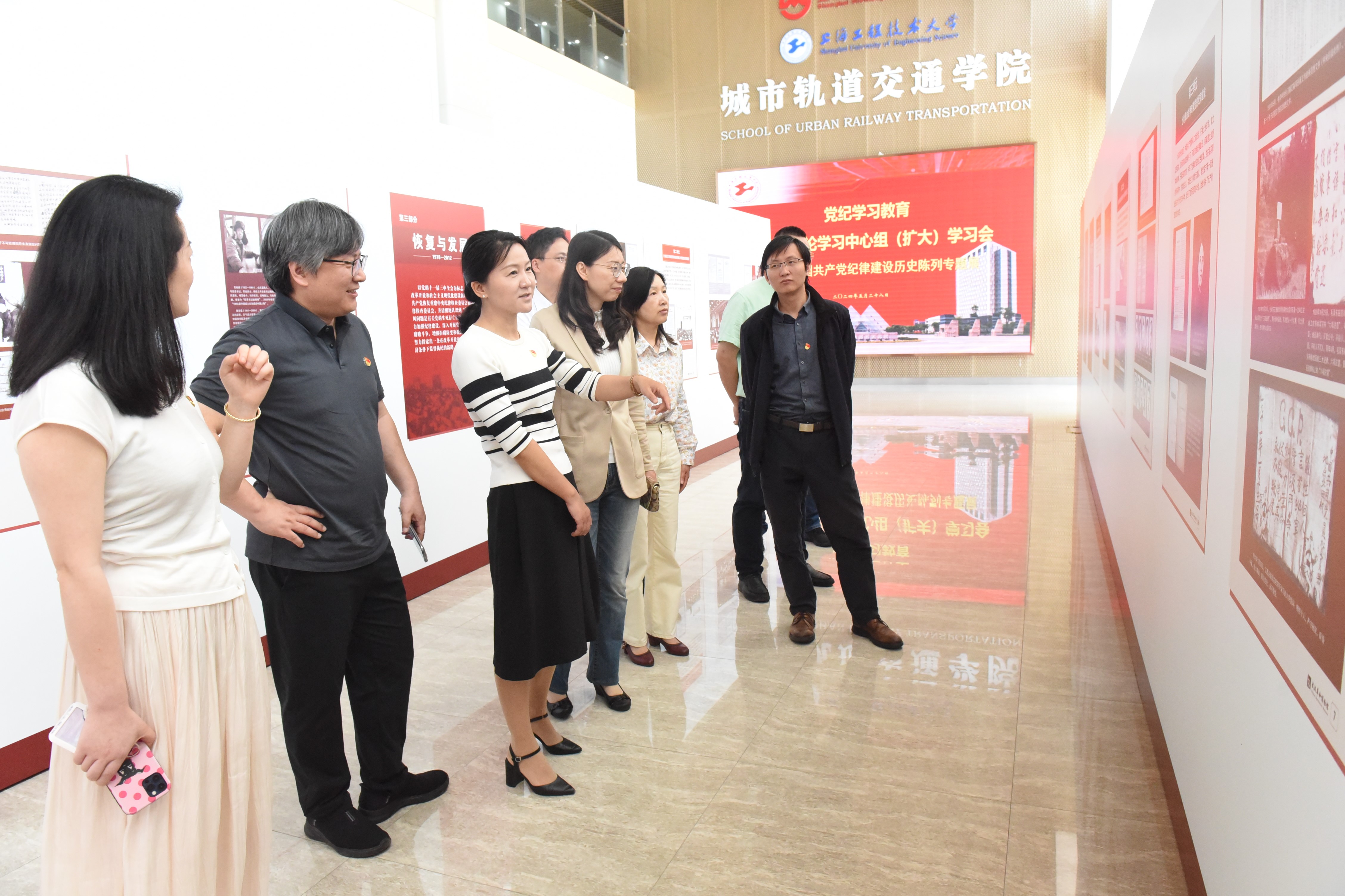 会后,电气学院党委委员、党政班子成员参观了位于现代交通工程中心一楼的中国共产党纪律建设历史陈列专题展。
