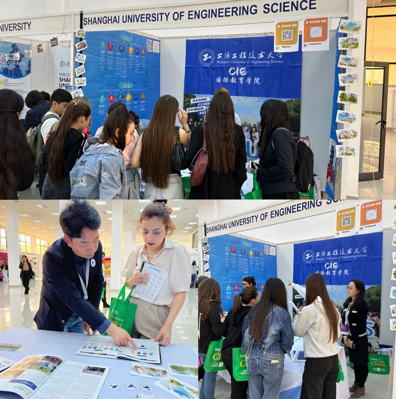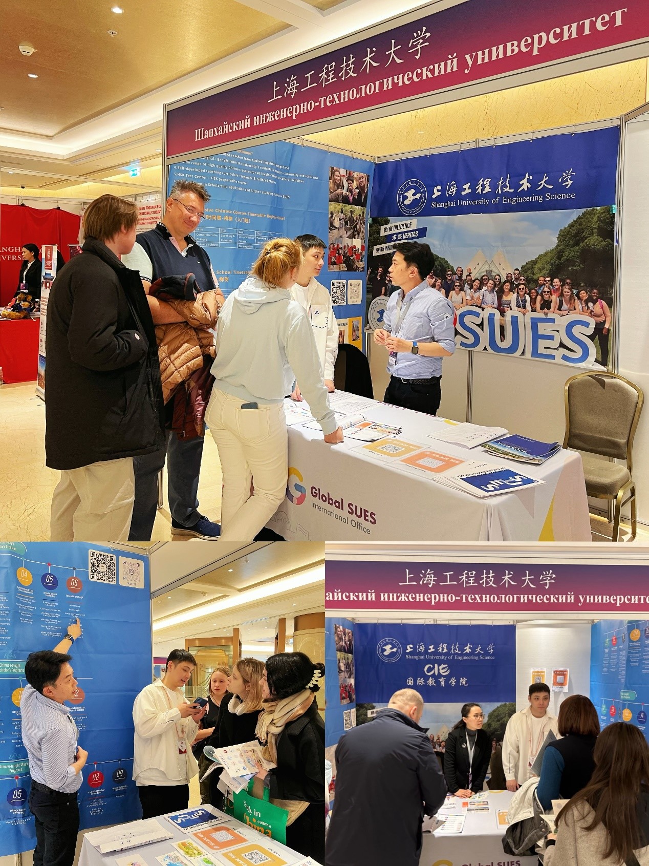 2024年HSK留学中国与就业展分为俄罗斯和亚美尼亚两场,清华大学、北京大学、上海交通大学、浙江大学、上海大学、中国科技大学、上海工程技术大学等来自国内20多所中国高校和华为、HSKMOCK、中国华铭、四川航空等20多家中国企业参加了本次展会。在本次展会上,上海工程技术大学在两国吸引了数千名学生、家长咨询留学信息,了解我校专业设置、学生培养过程和丰富多彩的校园生活,对上海工程技术大学有了深入的了解。