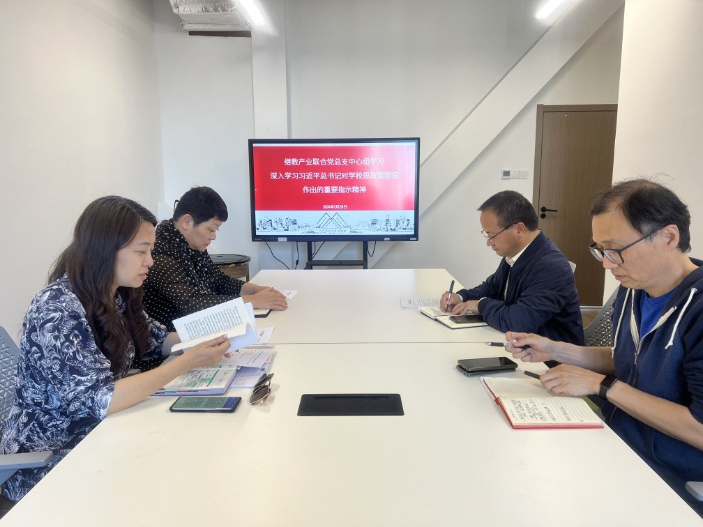 5月28日下午,继教产业联合党总支在长宁校区产教融合大楼11-20会议室举行党纪学习教育领导干部读书班暨党总支理论学习中心组会议,深入学习习近平总书记关于学校思政课建设的重要指示精神,全体党政班子、中心组成员参加会议,会议由党总支书记袁蓉主持。