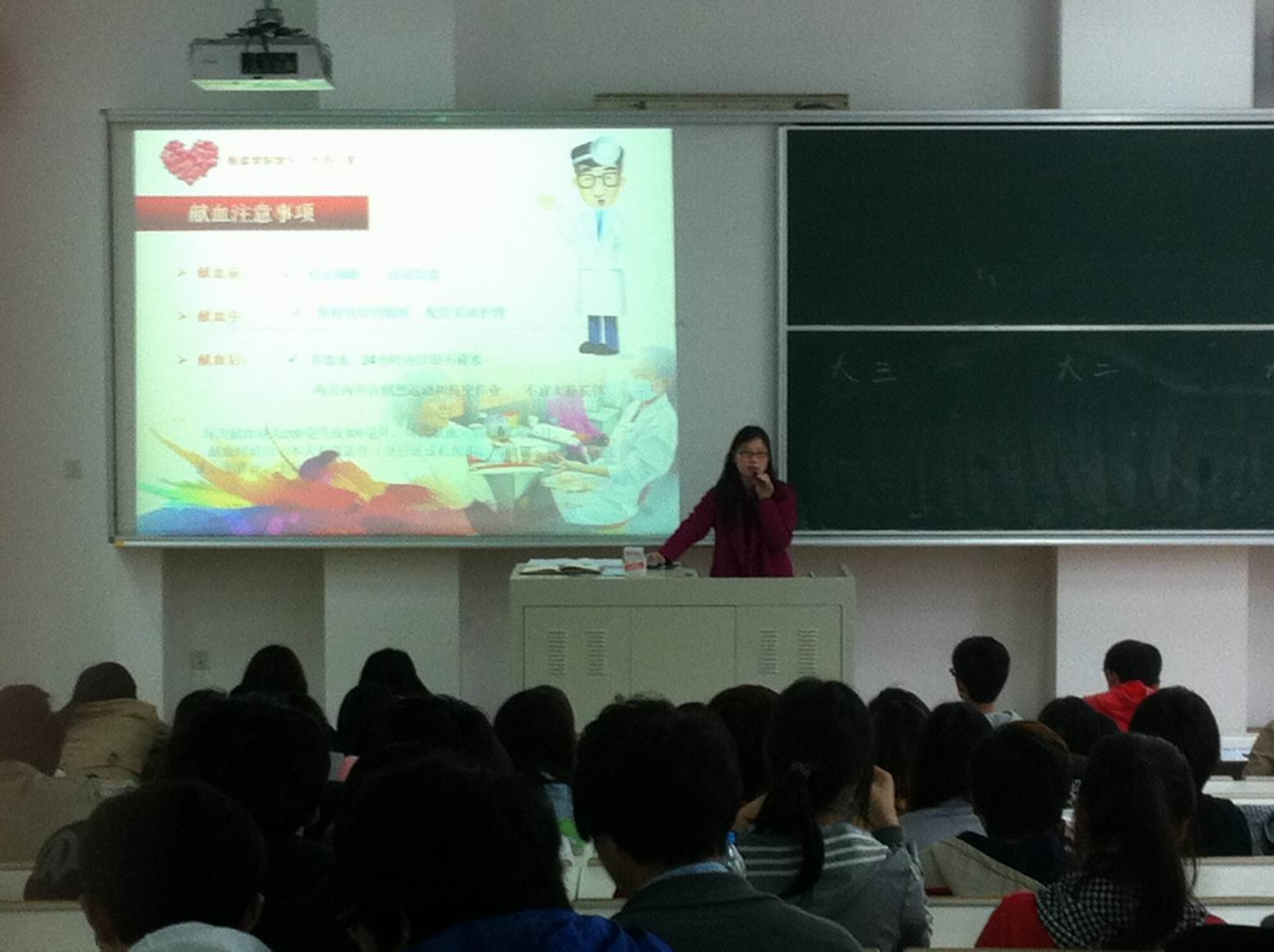 |  4月9日中午,服装学院于教学楼A218召开了学生无偿献血推进会,会议由服装学院党总支副书记李扬老师和学生辅导员沈智莉老师主持,所有服装学院自愿报名献血的同学参加了本次会议。 会议一开始,沈智莉老师先解答了同学都会有的疑问:“献血会不会影响健康”,她用科学的资料来明确地告诉大家“健康成人按规定献血对身体不会有影响,更不会伤元气。”这让所有报名献血的同学更加坚定了自己要献血的意愿。然后沈老师又强调了报名献血的基本条件以及献血前后的一些注意事项,希望同学们在保证自己身体健康的前提下,不影响自己的学习和生活。 最后,李扬老师做了总结性发言,他对同学们无私奉献的精神再次进行了肯定,并鼓励同学们不要担心和惧怕,不要有后顾之忧,让无偿献血成为自己青春年华中绚丽的一笔! 今年服装学院献血报名人数多于以往,同学们积极响应了学院的号召,展现了大家高度的社会责任心和良好的精神风貌,而本次会议的召开更是成为圆满完成献血工作坚实的保障! |