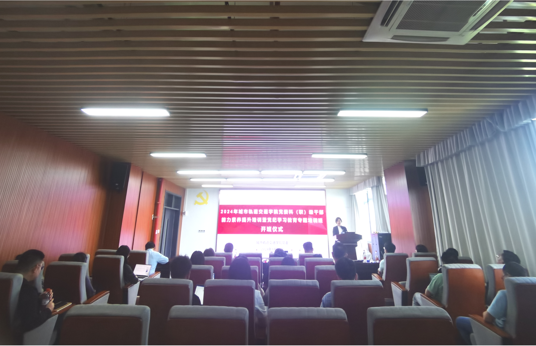 为深入学习贯彻习近平新时代中国特色社会主义思想,扎实开展党纪学习教育,切实提升干部能力素养。5月29日,城市轨道交通学院党委举办科(职)级干部能力素养提升培训暨党纪学习教育专题培训班开班仪式。学院全体领导班子,全体科(职)级干部,全体党支部书记、委员参加此次开班仪式。会议由学院党委副书记盛知恒主持。