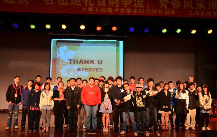 4月12日晚上,由高职学院社团联合会举办的校园文化艺术节之社团巡礼晚会“新梦想,新起航”,在学院师生活动中心四楼涵景堂隆重举行。 高职学院分团委副书记陆振波老师,管理系团总支书记武学慧老师,中法诶菲服装设计师学院分团委书记陈寅珕老师以及学院各系部的辅导员和老师们出席了本次晚会。同时还有来自学校中法服装设计学院,上海商学院,上海城市管理学校和上海海洋大学的学生们也参加了此次巡礼晚会。 精彩的街舞表演《最炫民族风》拉开了晚会的序幕。高职学院的二胡《赛马》、小品《心理医生》、B-box,海洋大学的弹唱《someone like you》,城市管理学院的《popping秀》,上海市高级技工学校同学们的诗朗诵《咫尺,如天涯》等等表演赢得了在场师生们的如潮掌声。最后,在校园生活改编歌曲《生活好多乐》中结束了本次晚会,全体演出人员与老师上台合影留念。 本次演出获得了老师和同学们的赞赏,舞台上高职学院社团精彩的表演让人印象深刻,相信他们在今后的校园生活中还会为大家带来更多的精彩表演。 |