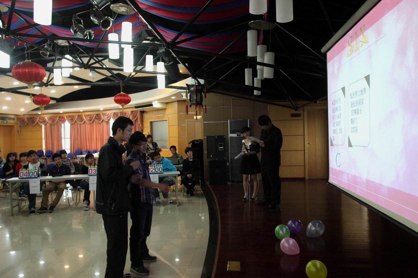 |  高职学院第七届学生读书活动之“满腹经纶”知识竞赛决赛在4月18日下午于综合楼十二楼举办。图书馆馆长王晓凤、学生科科长吴敏、团委副书记陆振波、制造工程系辅导员邢峰等老师出席了本次活动。 本次共有六支队伍参加决赛。题目涉及时政、历史、地理、艺术、科普、趣味等。面对高难度的试题,选手们丝毫不怯。场上选手角逐激烈,场下啦啦队鼓掌加油,现场气氛跌宕起伏、精彩纷呈,各代表队的出色表现震撼了组委会,最终有三个班级并列取得第一。 宣布比赛结果时,王晓凤馆长感言道,知识竞赛这一形式是读书节活动首次尝试。目的在于更广泛地动员学生参与到读书活动中来,希望通过知识竞赛展示参赛班级集体风貌,通过不同赛题反映的知识点,让同学在竞赛中互相学习,互相取益,各显其才。同时, “读书汇”、“松月文学社”的同学们在赛题的筛选中也得到了一次知识的洗礼。 本次活动,学院图书馆多次对赛题进行挑选和修改,避免难度相差太远和文理比重失调的情况,从而提高了比赛的合理性和公平性。活动集智慧、知识、趣味为一体,是自信与智慧的一次精彩绽放和展示。 |