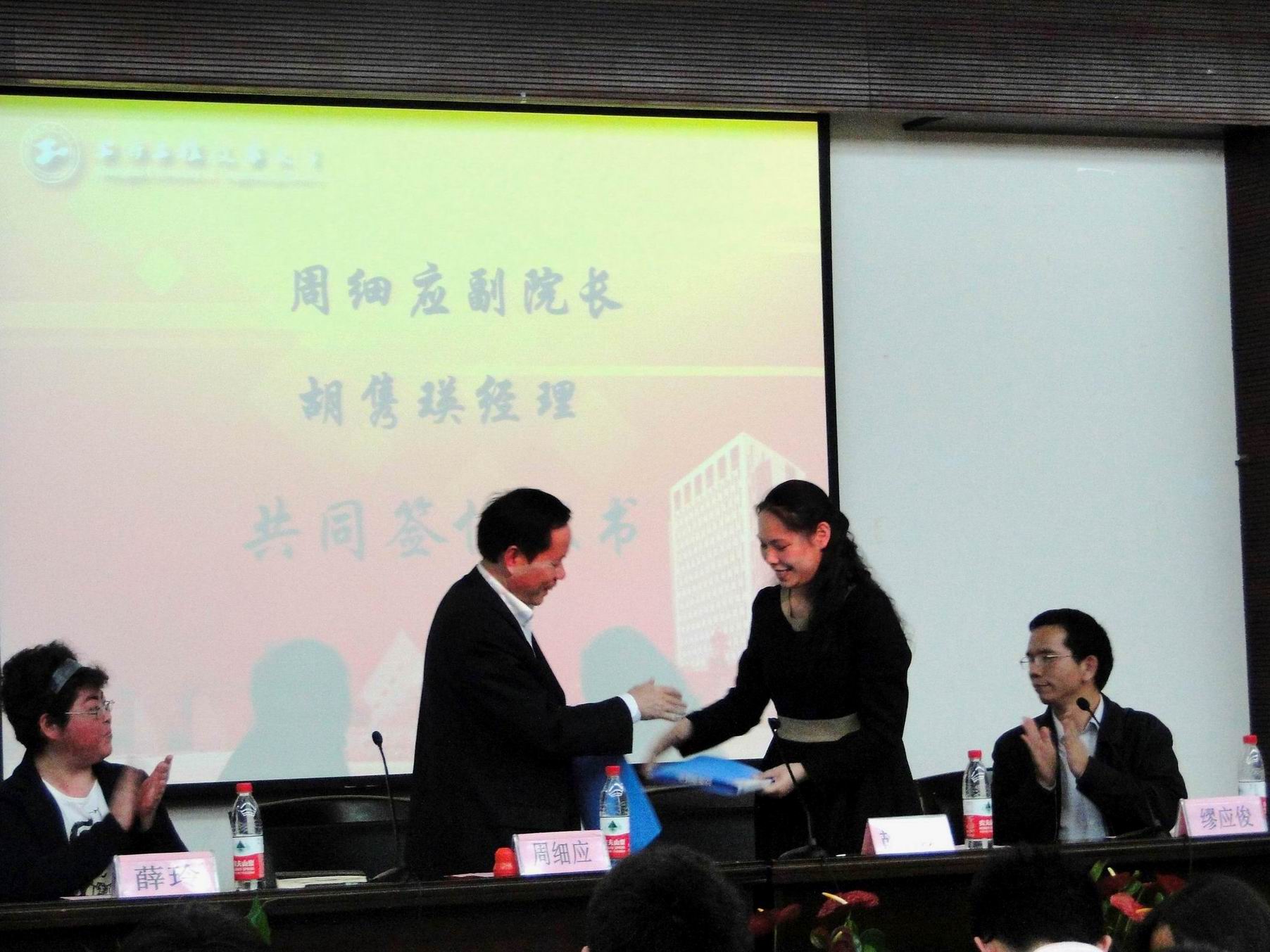 |   4月24日下午,第二届“延锋杯”三维设计大赛在图文信息中心第三报告大厅举行了开幕式,本次大赛由延锋伟世通汽车模具有限公司与上海工程技术大学合作举办。延锋伟世通汽车模具有限公司人力资源部经理胡隽瑛女士、设计部前期分析科经理缪应俊先生、材料工程学院周细应副院长、党总支薛玲副书记、分团委书记刘艳红出席了开幕式。 开幕式上,周细应副院长与胡隽瑛经理共同签订了协议书并发表了讲话,周细应副院长指出:创新能力在课堂上是学不来的,通过举办“延锋杯”三维设计大赛,能极大地提高学生们的创新能力,开拓学生们的思维空间。胡隽瑛经理认为在大学里学的知识是在以后深度钻研的基础,学好基本知识,就能在以后的生活工作中发挥重要的作用,学校培养的是勇于创新的人才,这与延锋伟世通汽车模具有限公司与上海工程技术大学合作举办“延锋杯”的目的不谋而合,就是要充分发挥学生的思维创新能力。 周细应副院长和胡隽瑛经理精彩的讲话赢得了在场的老师和学生们的阵阵掌声,在开幕式的最后,上届获奖的徐洋同学为大家介绍了参赛经验,这极大地激发了同学们的热情,相信这次三维设计大赛将会为同学们提供一个展示自我、提升自我的舞台。 |