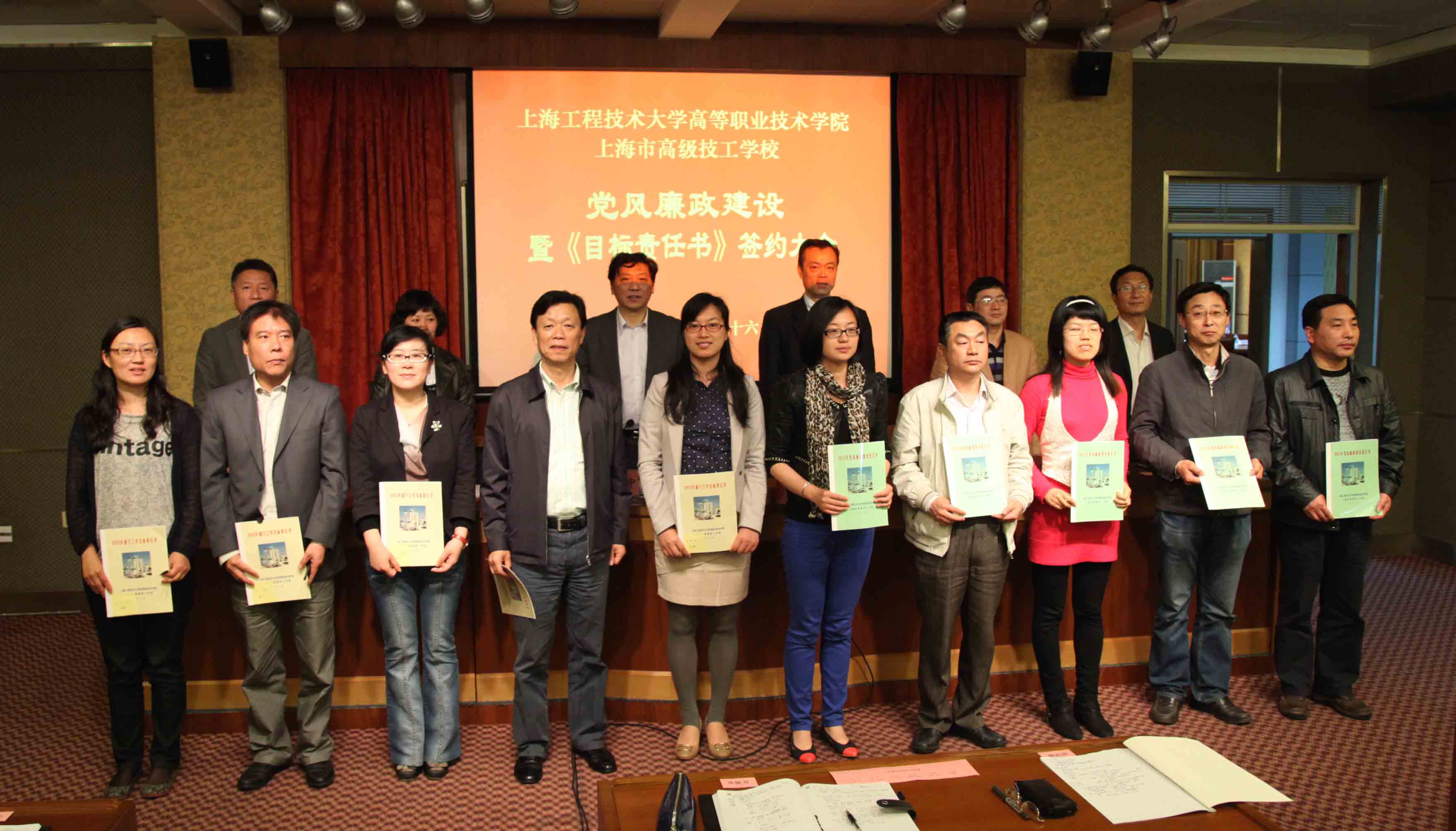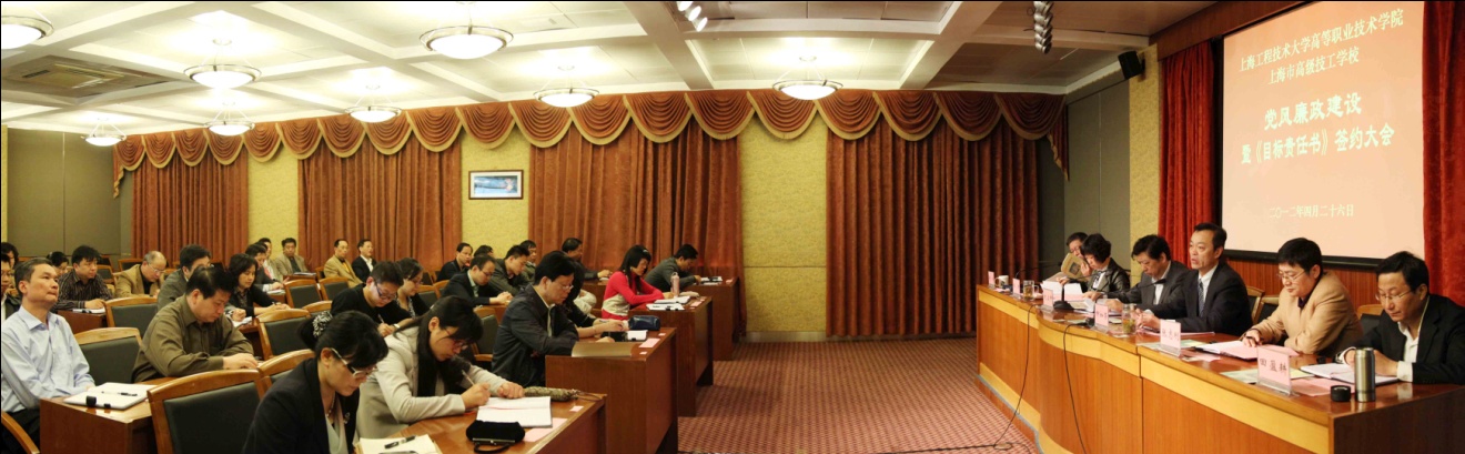 |   4月26日上午,高职学院2012年党风廉政建设大会暨《目标责任书》签约大会在综合楼9楼会议室召开,院长刘启中、党委书记柳如荣、党委副书记李军、校财务处副处长、学院财务总监张志刚、副院长胡宁、田盈耕等院领导出席会议,学院全体中层干部参加会议,会议由刘启中院长主持。 胡宁副院长传达了胡锦涛总书记在第十七届中央纪委第七次全会和上海市委书记俞正声同志在第九届上海市纪委第七次全会上的讲话的精神。 院党委副书记、纪委书记李军就2011年度学院的纪委工作进行了总结,并对2012年度的纪委工作做了计划和部署。 院党委书记柳如荣代表学院党委就学院的党风廉政建设工作发表讲话,他强调:落实本次会议的精神,加强学习、统一思想是基础;贯彻落实本次签约,二级班子的建设是关键;队伍建设是保障;而推进发展的关键在于党。希望全院以2012年的重点工作为抓手,按照学院十二五规划的阶段要求,克服困难,全力推进学院的各项工作。 刘启中院长就目标责任书签约工作发表了讲话,他希望广大教职员工认真对待签约工作,统一思想、明确目标、突出重点、狠抓落实。同时,刘院长结合学院工作提出了四个意识的强化要求,即责任意识、超越意识、主动意识、勤政廉洁意识。他号召广大教职员工同心协力,携手共创生活家园、精神乐园、成功校园。 会后,学院各党支部书记和部门负责人分别签订了《党风廉政建设责任书》和《部门目标责任书》。 |