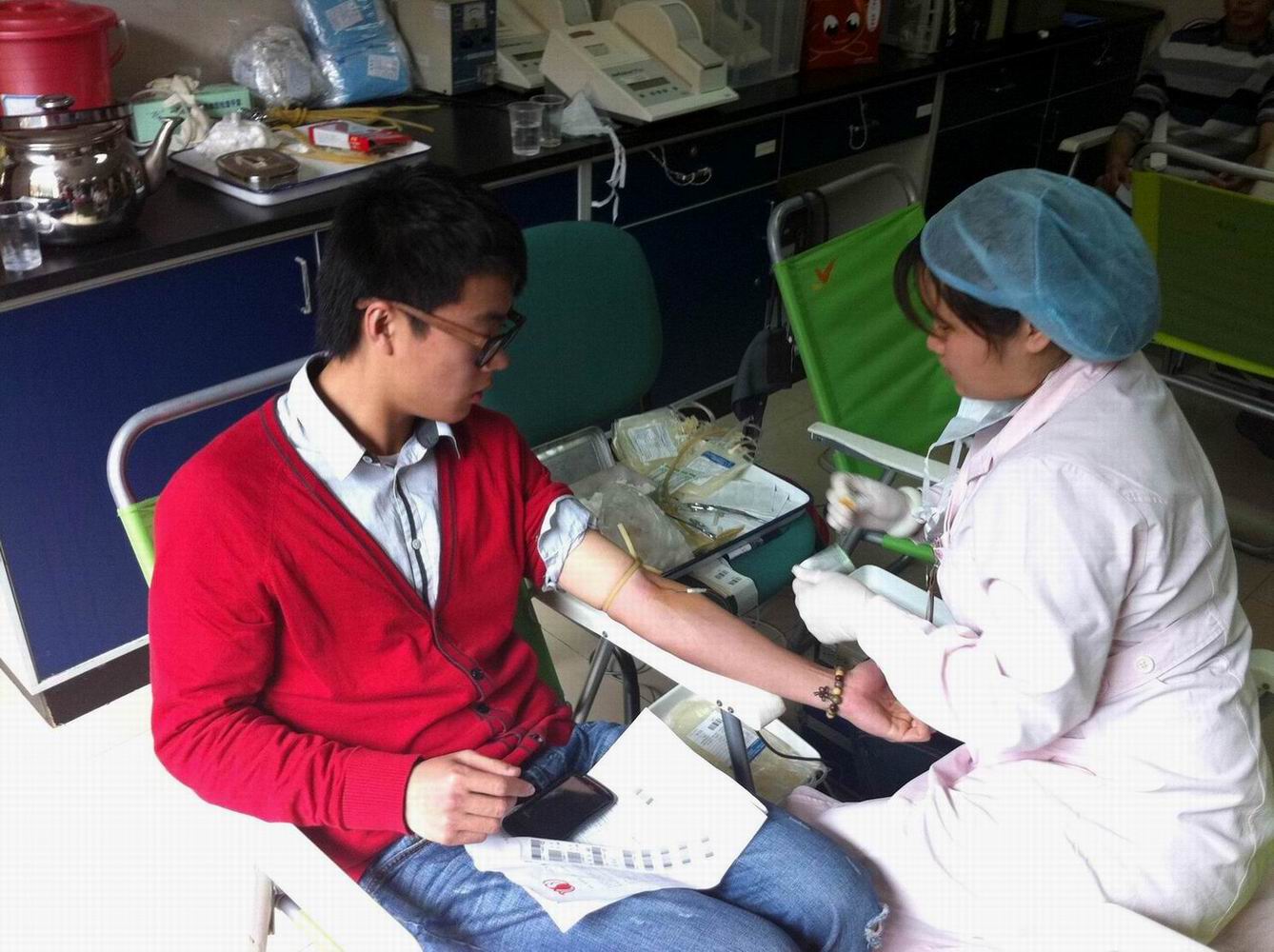 4月26日早上,在同学们集合之际,学院就早已为同学们准备好了热汤、牛奶等营养物品,让同学们为之感动。献血本来就是作为一名大学生的社会责任,学院不但给予了同学们各种帮助,还无时无刻的支持着他们,充当着同学们坚强的后盾。虽然是人生中的第一次献血,但大家都本着一方有难,八方支援,为社会献出一份微薄之力的想法,在医务人员的引导下有序的主动配合进行献血。大一的沈捷和毛慧一同学有晕血的现象,但他们硬是顶着生理反应坚持献血;大三的江淳源和唐智骢同学,作为学长已是第二次参加献血,为同学们树立了榜样,让人清楚感受到当代大学生对生命的热爱。老师和志愿者同学在现场关心着每一位献血的同学,为他们提供帮助,整个场面充满着和谐与温暖的气息。