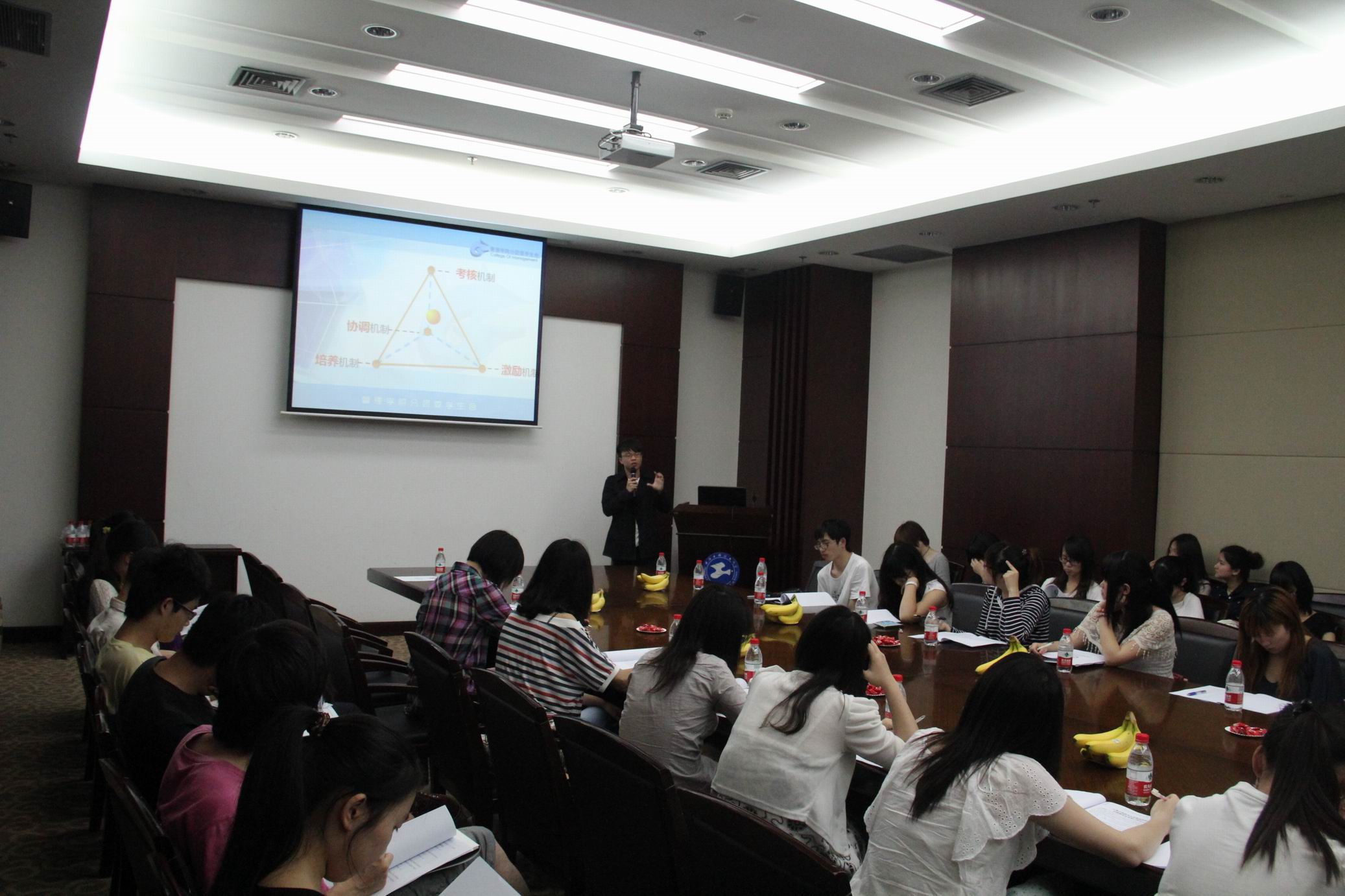 5月7日晚,由管理学院分团委学生会外联部主办的学生会经验交流会在图文信息中心第五报告厅举行,此次经验交流会邀请到上外法学院分团委学生会共同参与,管理学院外联部部长杨振波同学担任主持,双方学院分团委学生会主席携主席团及各部门部长代表参加了经验交流会。 首先,杨振波同学代表管理学院热情地欢迎了来自上外的各位代表们。在简短的自我介绍后管理学院学生会主席华晓东及上外法学院学生会主席秋爽分别致辞。随后,华晓东以严谨正式的ppt从分团委学生会的构建角度向各位进行全方位的介绍,突出分团委学生会的“一个中心”、“两个抓手”、“四个机制”以及“四个阵地”,从“人”与“事”两个方面清晰地阐述了分团委学生会的工作目标。上外法学院学生会主席秋爽以轻松活泼的方式介绍了上外法学院团委学生会的整体构架,更加着重活动开展的品牌化和专业化,强化服务深入人心,并向管理学院抛出橄榄枝,希望能有更多合作机会,开展共同合作活动项目。 随后双方就特色活动介绍了自身的经验。管理学院介绍了学院品牌活动,从“模拟面试”到“模拟创业大赛”,从“美食节”,“寝室文化节”到“T恤设计大赛”,从“篮球嘉年华”,“足球季”到“集体舞大赛”等特色活动,均精彩纷呈并以服务学生为宗旨使学生受益良多。上外法学院介绍的模拟法庭,模拟联合国等形式内容新颖的特色活动也迅速吸引了各位同学。在介绍展示特色活动的同时交流举办经验与心得,两方代表均受益匪浅。随后,双方部长代表进行了自由讨论,深入并愉快地交流了各部门的管理经验、活动实施、人才培养等方面。最后双方合影留念并互赠联系方式。 分团委学生会经验交流会已经走入了第五个年头,在分享宝贵经验的同时也促进了双方相互的交流合作与进一步深化友谊,对分团委学生会工作起到了积极的推进作用,为改善团学联的工作质量,推进团学联的发展与服务,更好地在培养人才、品牌活动、管理服务等方面奠定了坚实的基础。 |