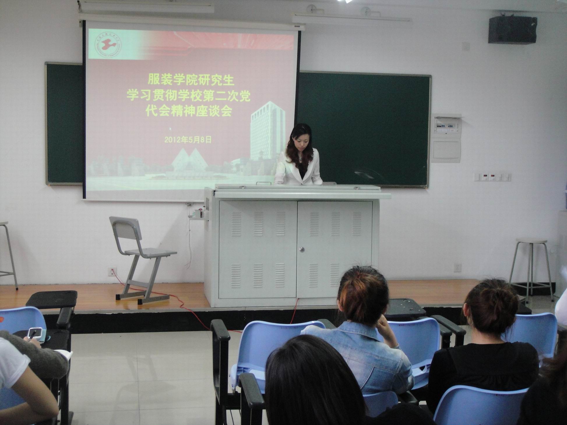 |  5月8日上午,服装学院在党总支的领导下,学生工作办公室组织全体研究生在艺术楼C310专题学习了《学校第二次党代会精神》,这是继学院全体本科生掀起学习宣传贯彻落实学校第二次党代会精神热潮之后的又一次学习高潮。学院党总支书记袁蓉、副书记李杨和辅导员陈小琼参加了专题学习会。专题学习由袁蓉老师主讲。 会上,党总支书记袁蓉传达了学校第二次党代会精神,解读了校党委书记滕建勇所作的题为《坚持科学展、推进内涵建设、提高教育质量、构建和谐校园,为创建现代化特色大学而努力奋斗》的报告,认真学习了“六个必须”和“六大主要任务”及学校“三步走”的发展战略和总体部署。 最后党总支书记袁蓉希望学院全体研究生要在平时的工作学习中坚决贯彻落实好学校第二次党代会的精神,认真学习,踏实作为,为学院学校的发展贡献自己的力量,为创建现代化特色大学而努力奋斗!