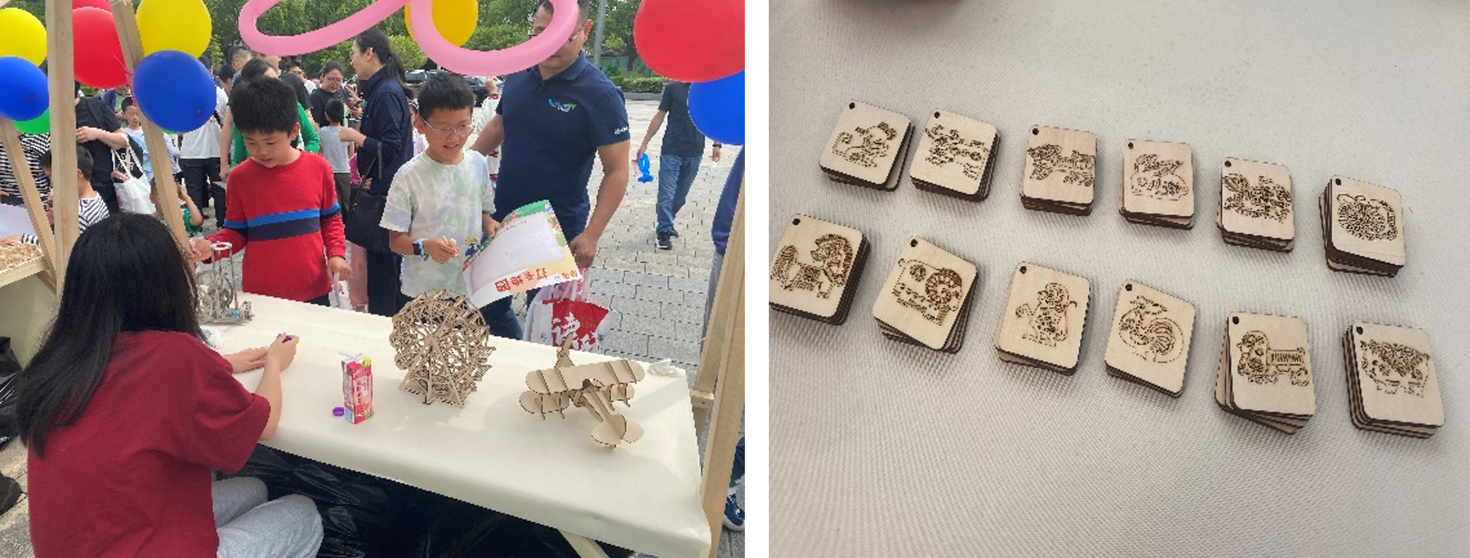 利用激光雕刻技术制作的各种工艺模型引起了孩子们强烈的兴趣,背诵出十二生肖可以获得一个激光雕刻生肖牌,让孩子们感受传统文化与现代加工工艺结合的魅力。