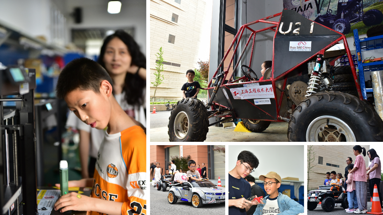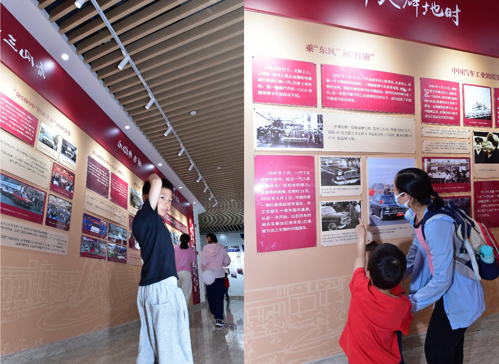 本次活动形式多样,内容丰富多彩。在交通中国党性教育长廊,大学生志愿者为“程二代”们上了一堂沉浸式、情景式和体验式的历史课,帮助孩子们了解中国汽车工业的发展历程,学院科创的大事纪要和大学生们在科创赛场上的辉煌成就,在孩子们的心里埋下科创报国的种子。